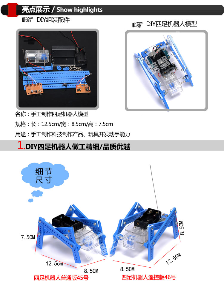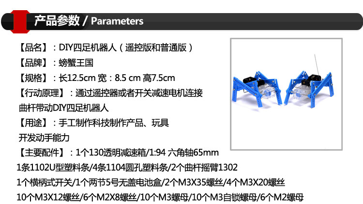 螃蟹王國DIY模型玩具拼裝 新四足機器人 科技制作 遙控版 普通版1入