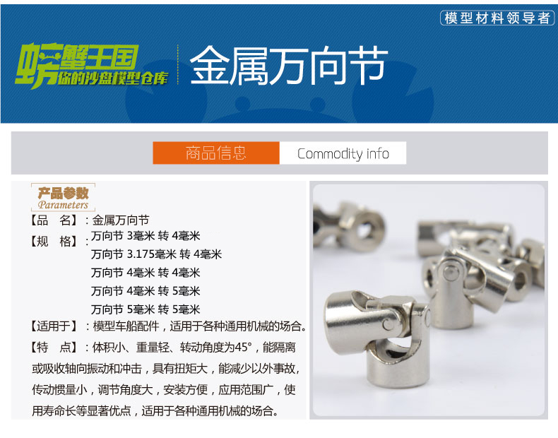 萬向節 航模船模十字萬向節傳動軸 船軸車軸聯軸器金屬接頭配件1入
