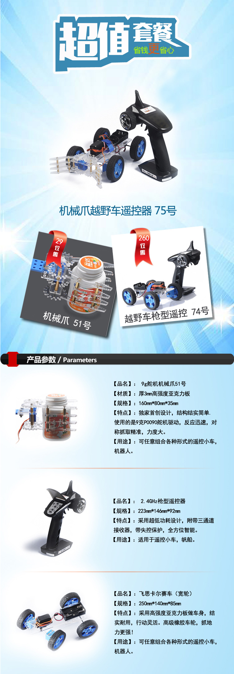 舵機轉向越野車遙控機械爪含遙控DIY拼裝材料包1入