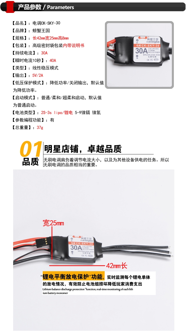 螃蟹王國 無刷電調電變 航模配件 DIY模型遙控飛機電調 CK-SKY-301入