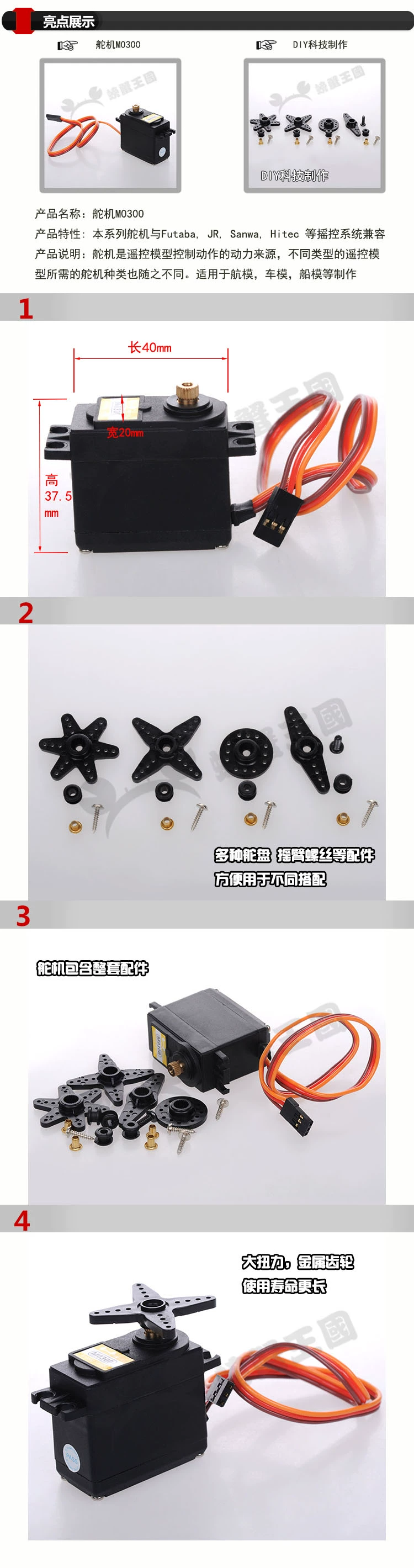 螃蟹王國 機器人模擬金屬齒輪伺服器機高扭力大 M0300 舵機 90度1入
