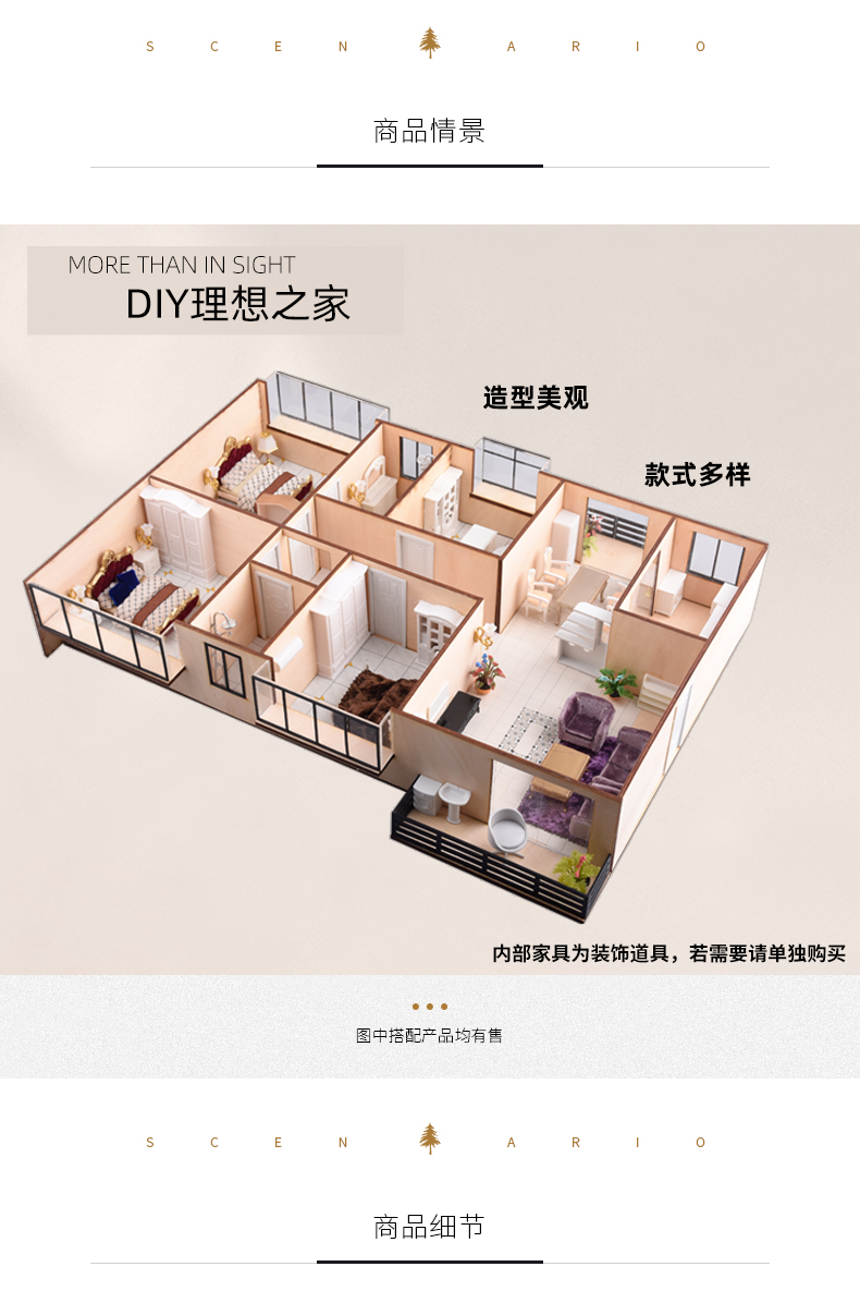 螃蟹王國建筑模型場景剖面戶型圖DIY手工制作多種套裝可選1入