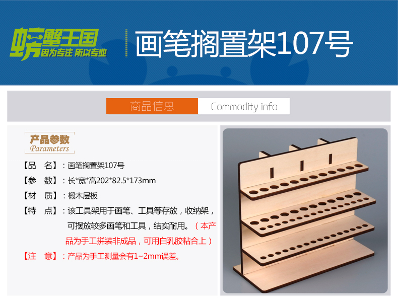 螃蟹王國油漆架顏料木質存放收納架 DIY模型工具 畫筆擱置架107號1入