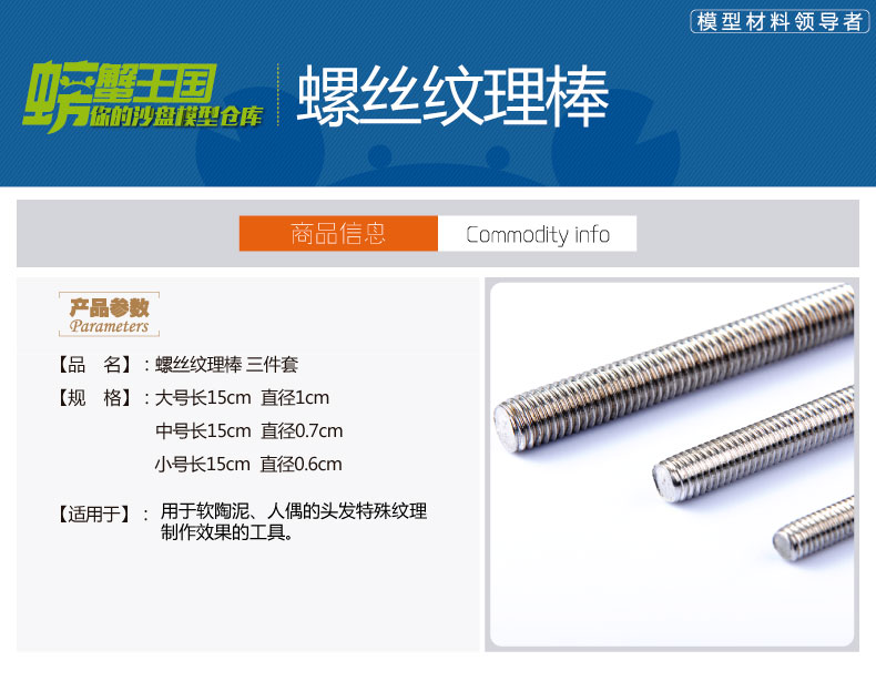螃蟹王國 軟陶超輕粘土 發紋特殊紋理效果工具 螺絲棒 螺絲紋理棒1入
