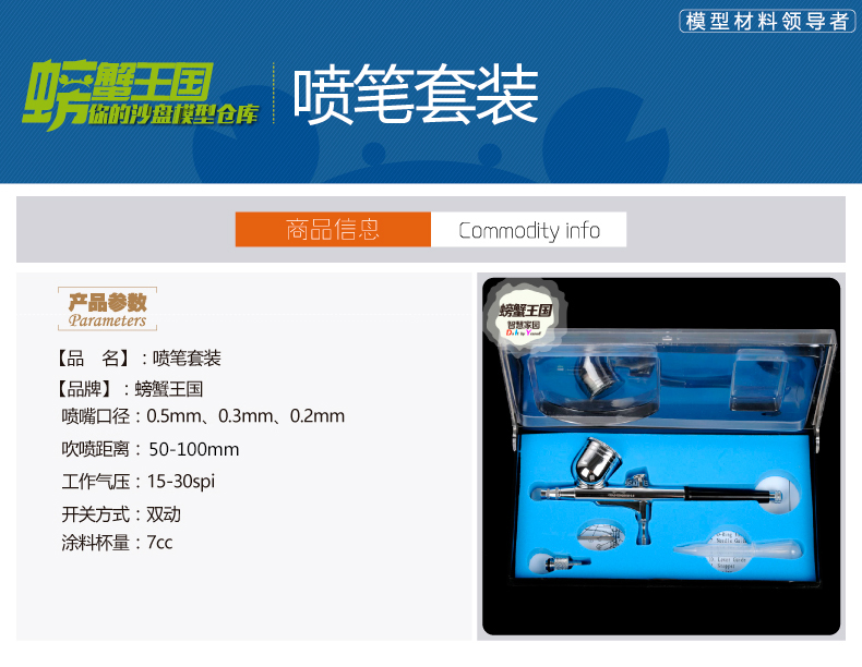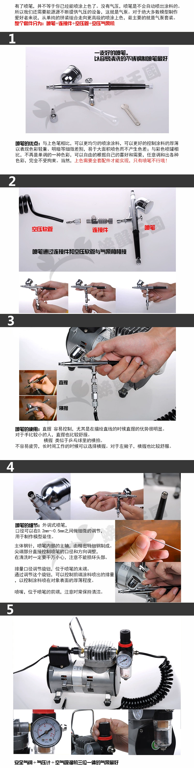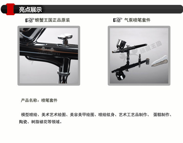螃蟹王國 原裝正品模型氣泵彩繪上色噴筆套裝 雙動外調 多種口徑1入