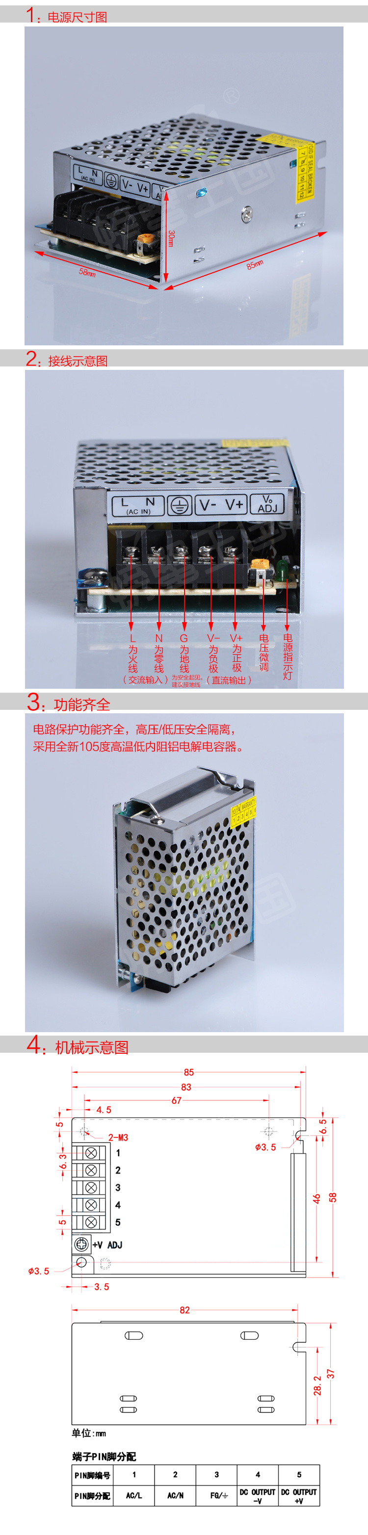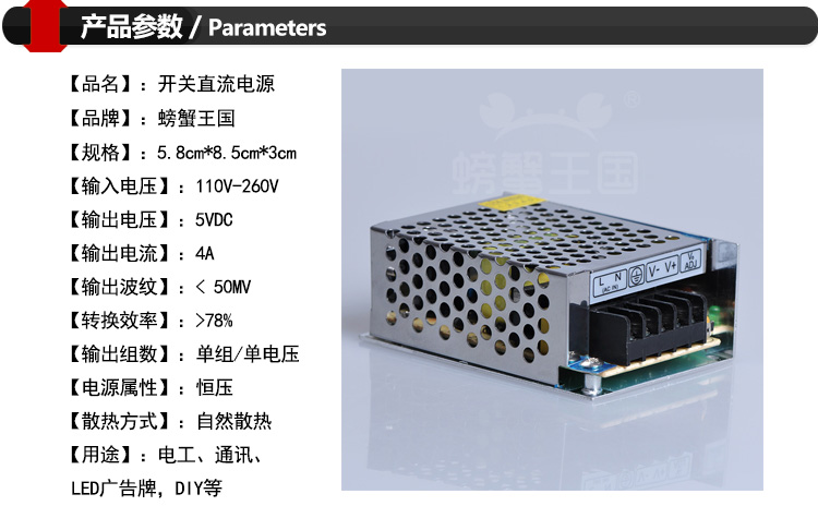 螃蟹王國 開關電源 變壓器LED 電源 110-260V轉直流5V3.8A 5V4A1入