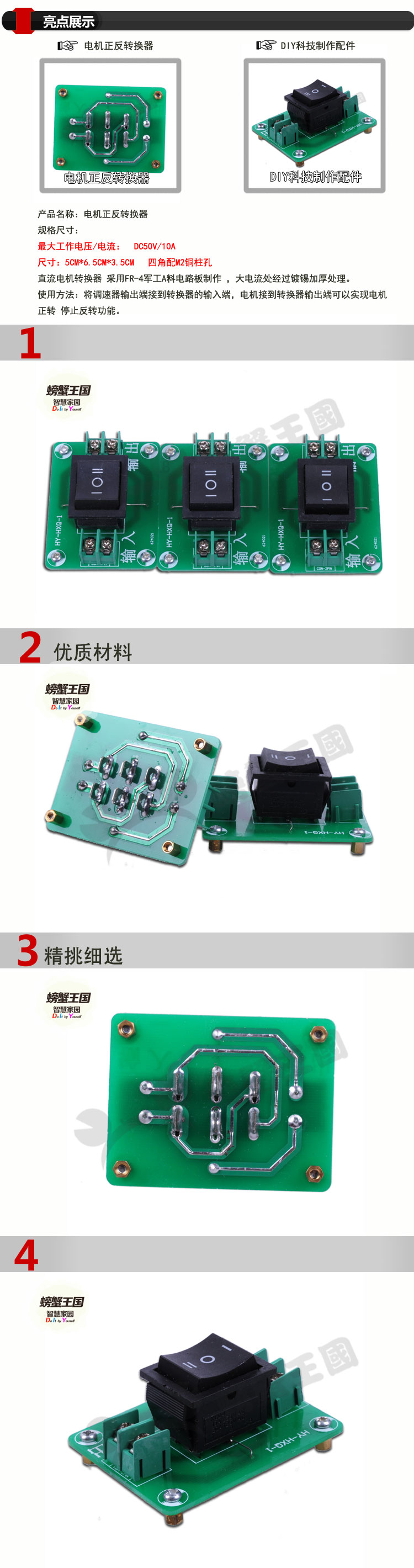 螃蟹王國 開關 正負極轉換 電機正反轉控制器 雙向開關 轉換器1入