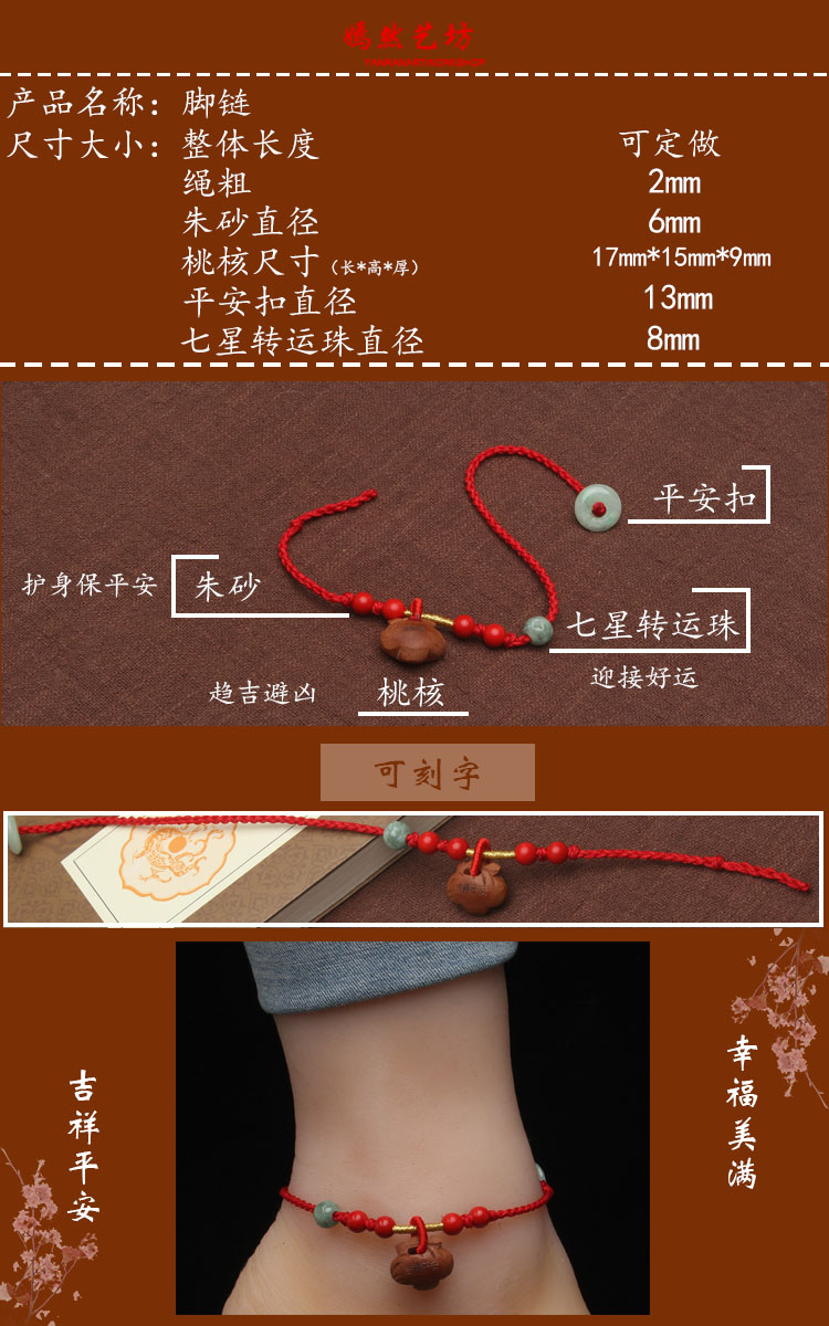 大小可以自己固定 統號25厘米 如果腳鏈大了 移動尾部的平安扣 到合適的位置 打個結 把多余的繩剪下就可以了