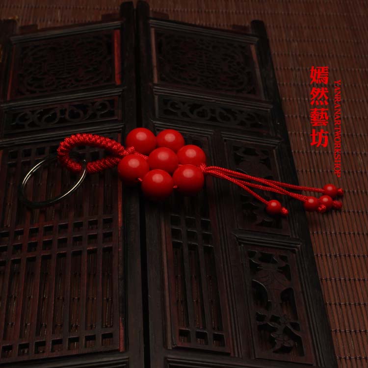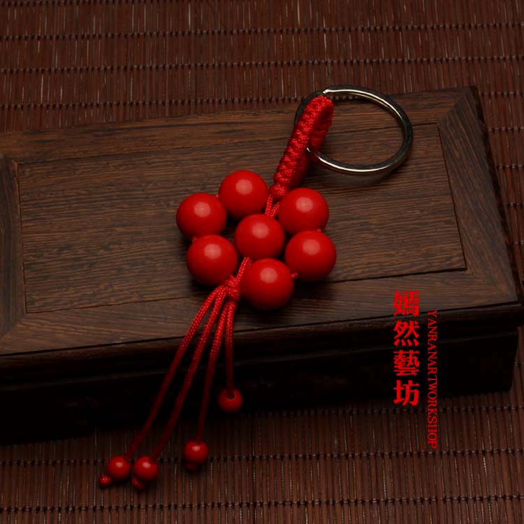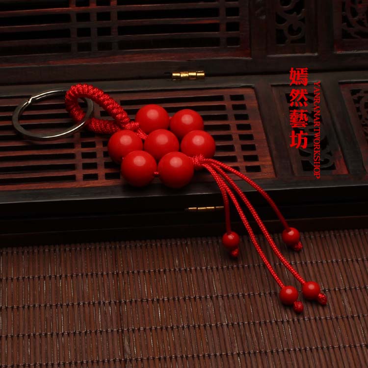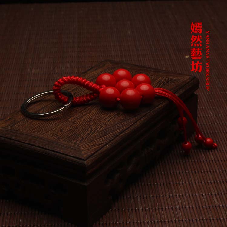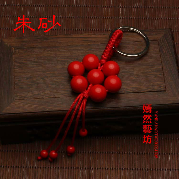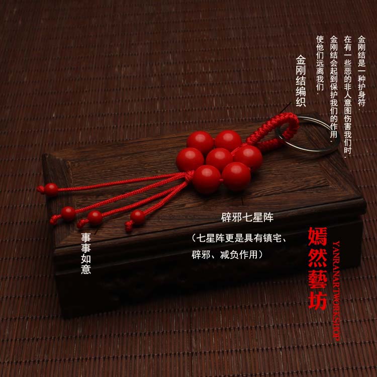 辟邪鑰匙扣紅朱砂七星陣金剛結編織掛件吊墜中國紅保平安旺財運1入