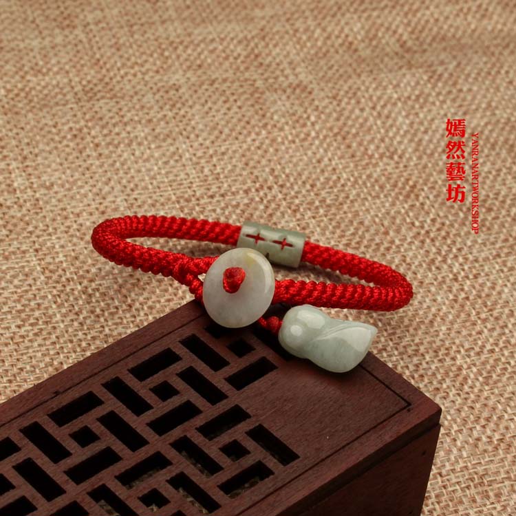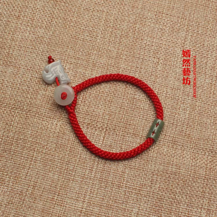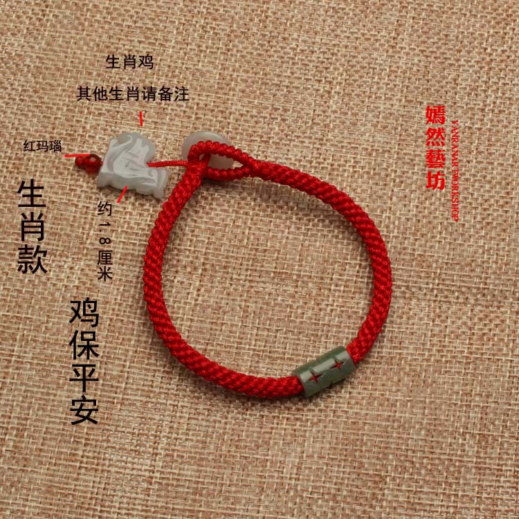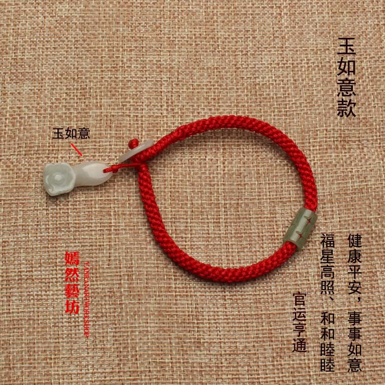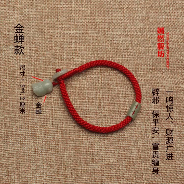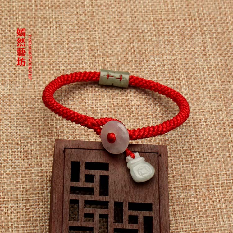 開光A級玉石轉運珠紅繩手鏈平安扣玉如意金蟬雞年男女款手串手繩1入