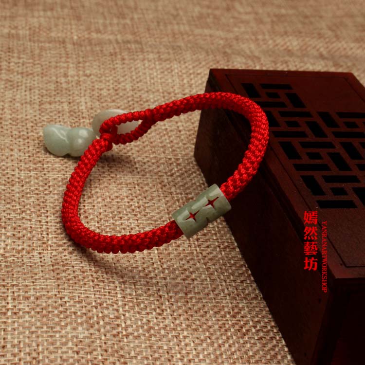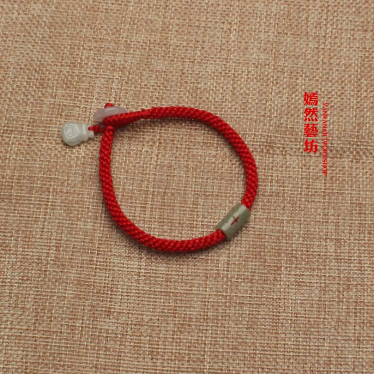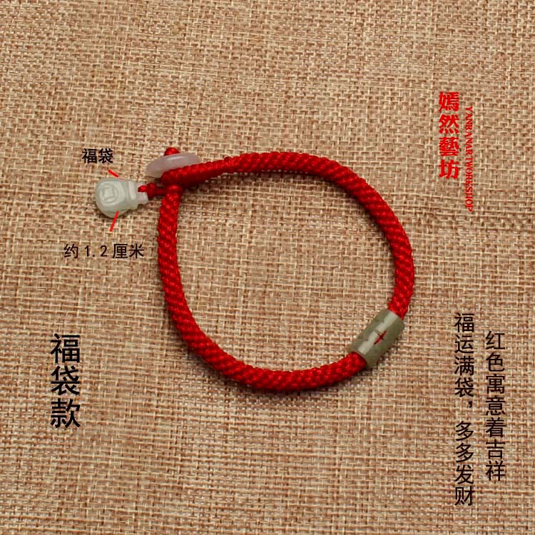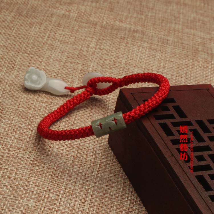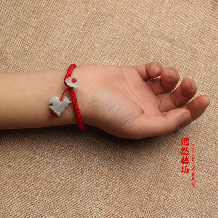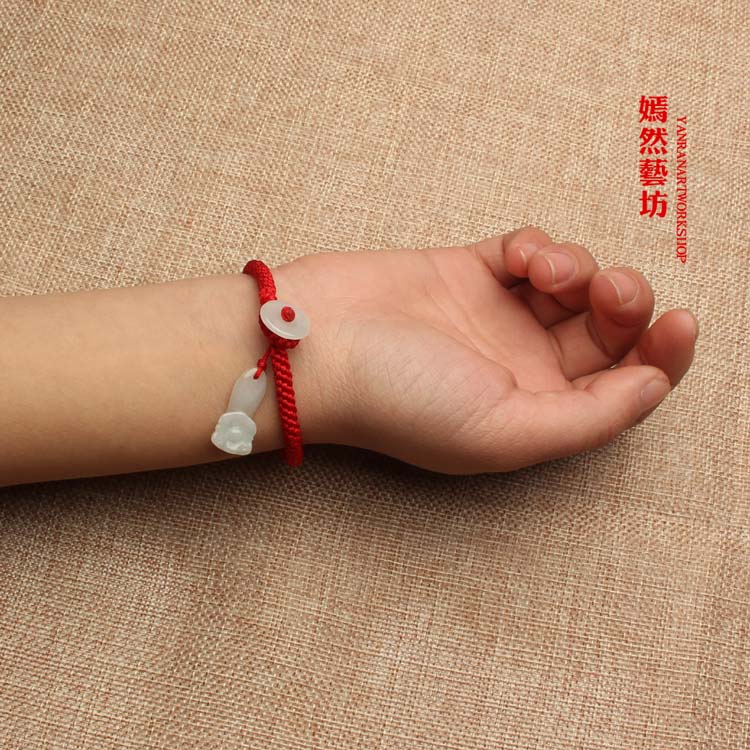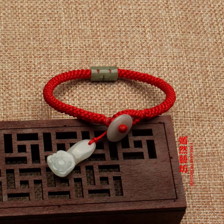 開光A級玉石轉運珠紅繩手鏈平安扣玉如意金蟬雞年男女款手串手繩1入