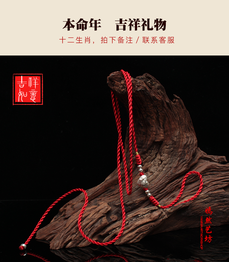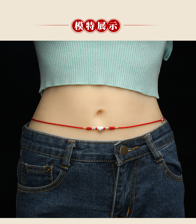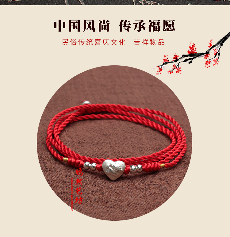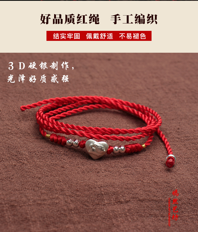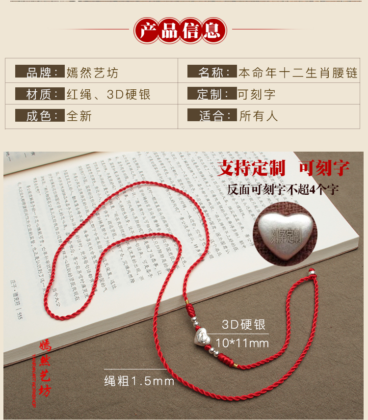 2019豬本命年999足銀紅繩腰鏈愛心生肖刻字男女轉運珠紅腰繩禮品1入