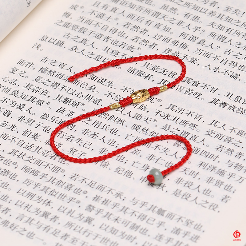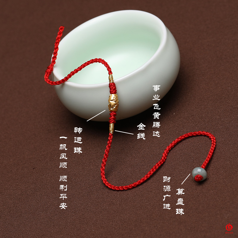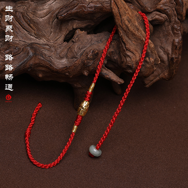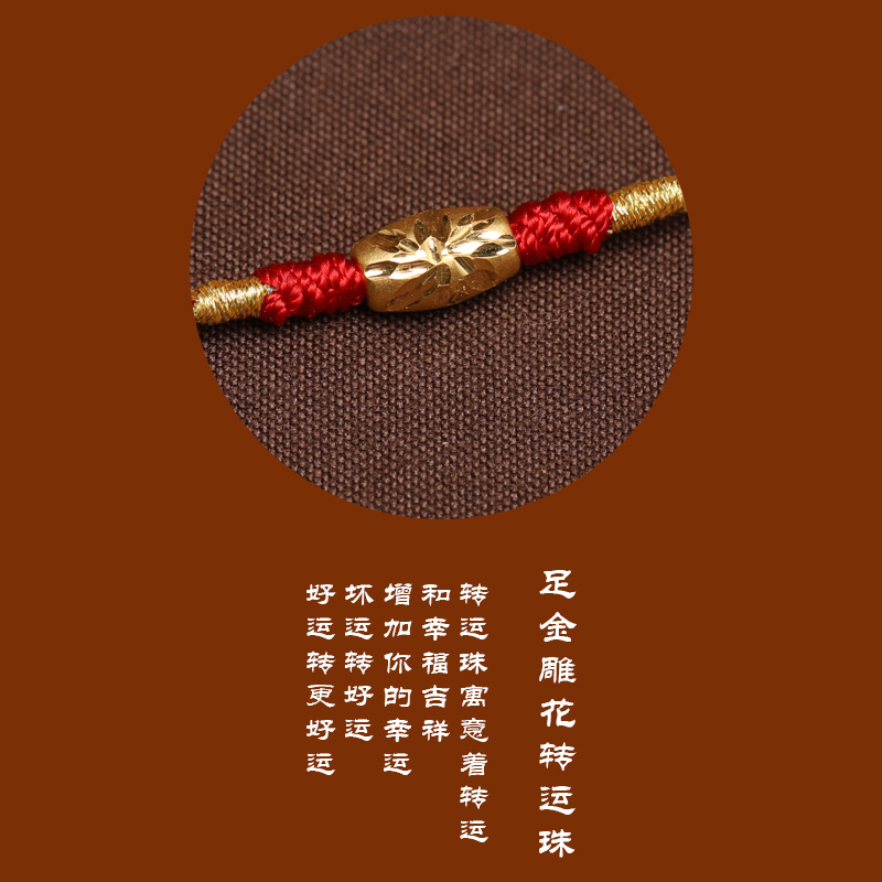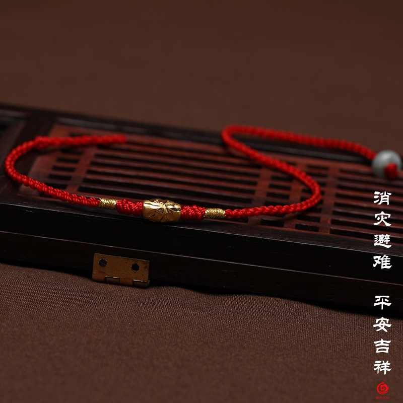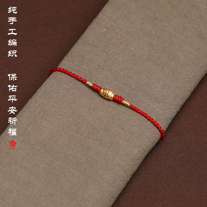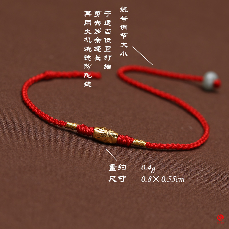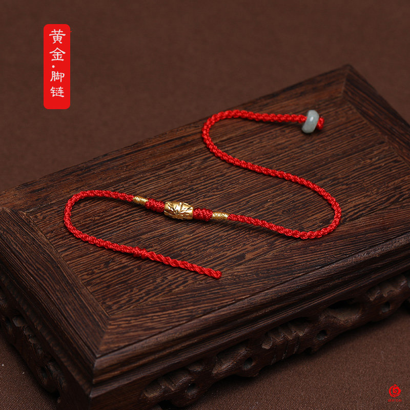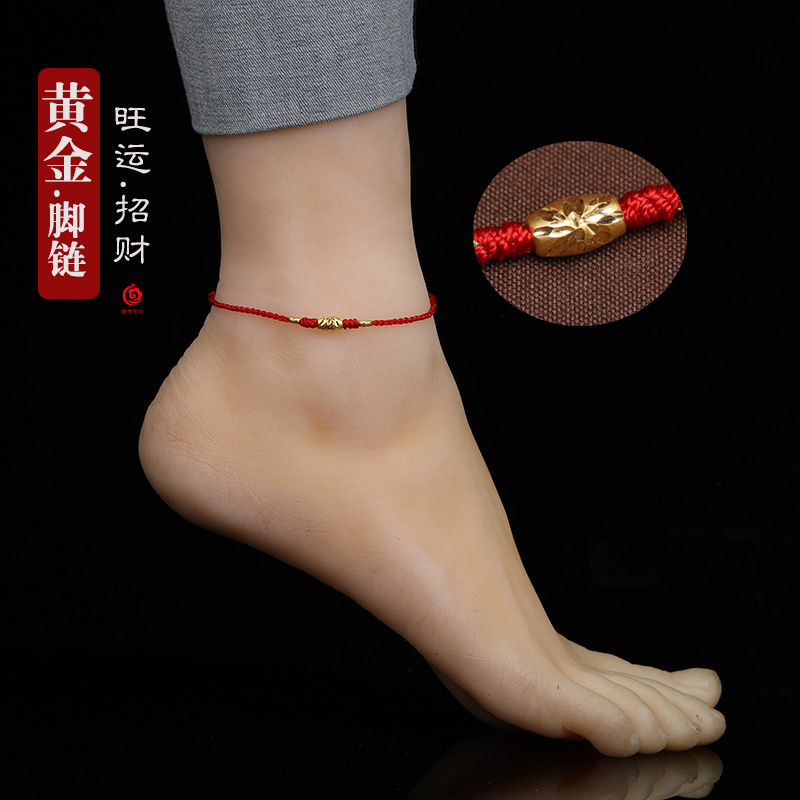 黃金紅繩轉運珠腳鏈手鏈3D硬金紅腳繩手繩本命年男女護身防小人1入