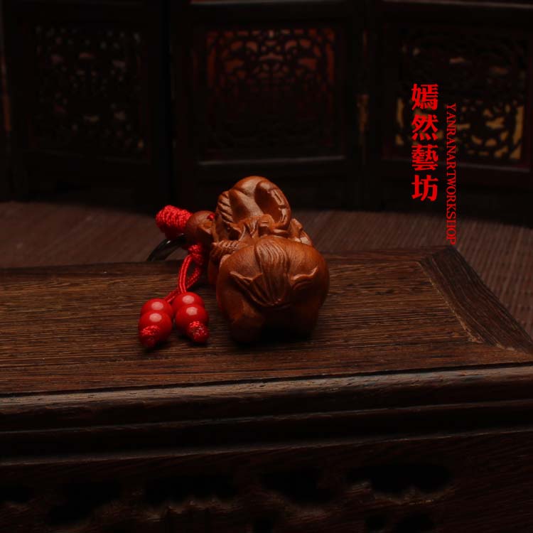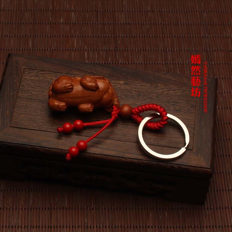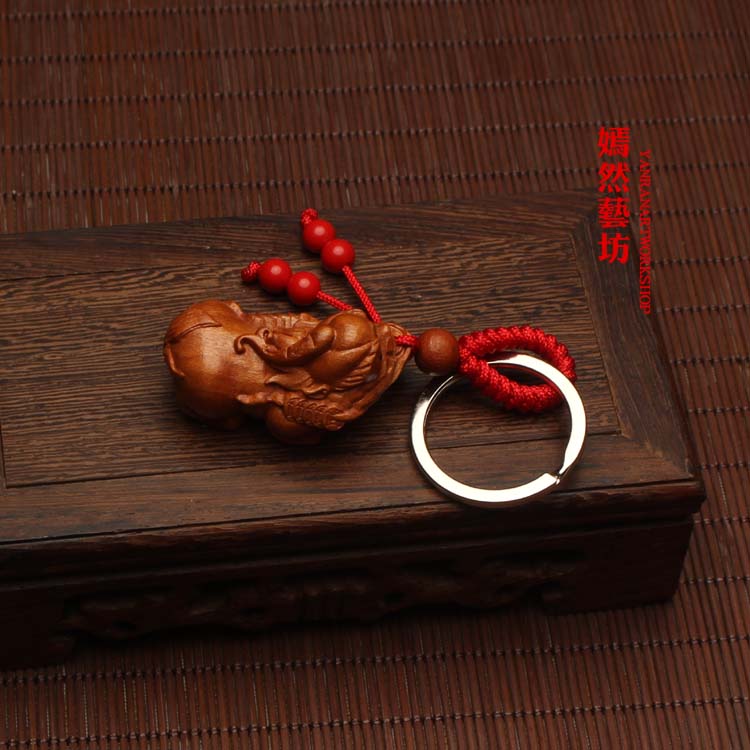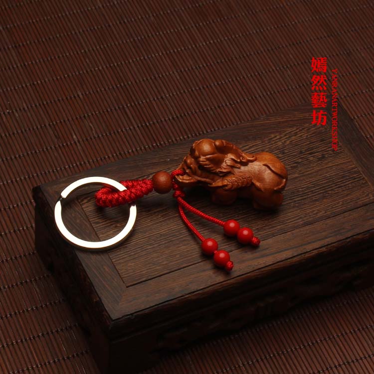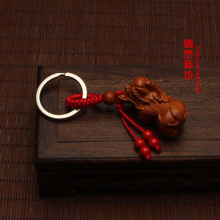 正品桃木貔貅鑰匙扣掛件吊墜汽車鑰匙扣辟邪護身招財朱砂轉運珠1入