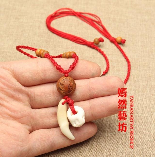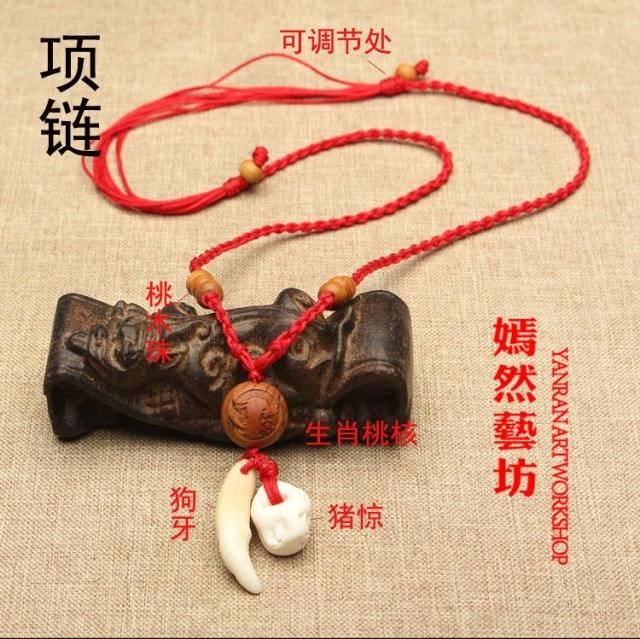 【嫣然藝坊】嬰兒寶寶辟邪項鏈狗牙 生肖桃核 豬驚紅繩項鏈 男女1入