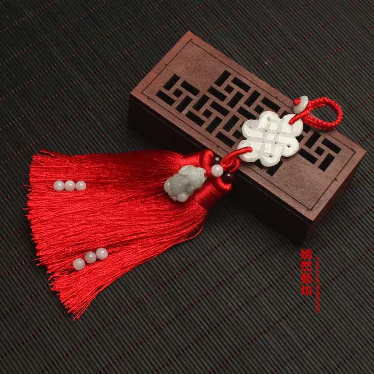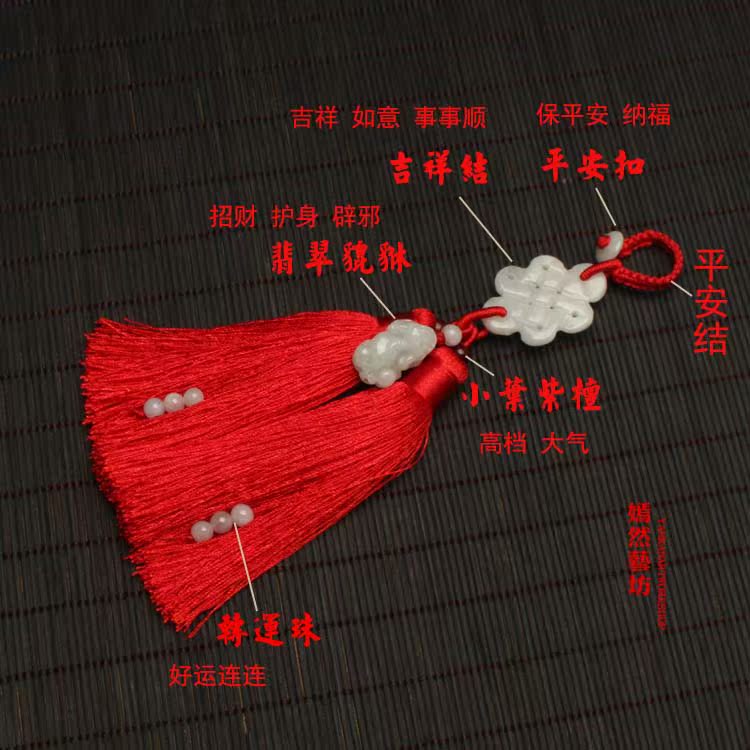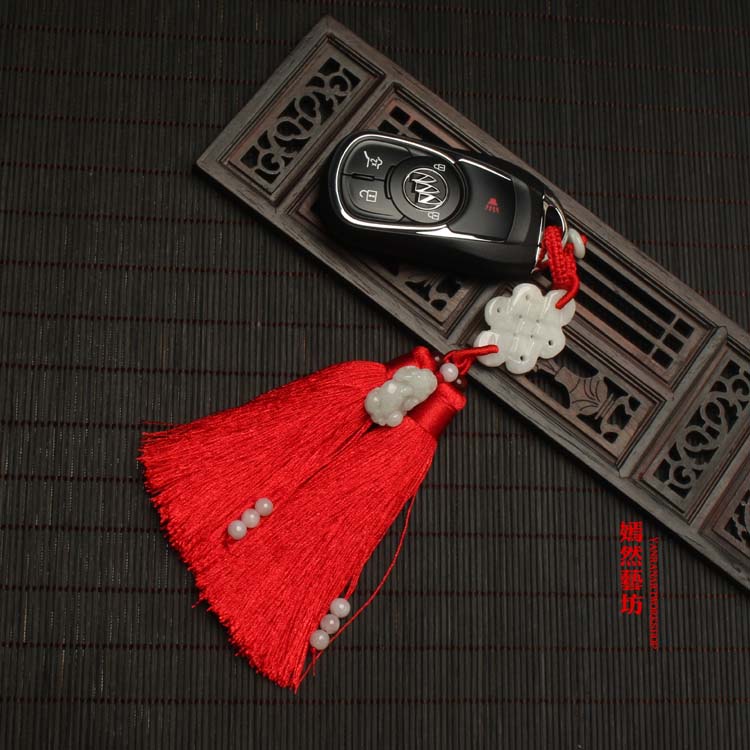 手工翡翠吉祥結貔貅紅繩高檔汽車鑰匙扣情侶男女創意禮品流蘇掛件1入
