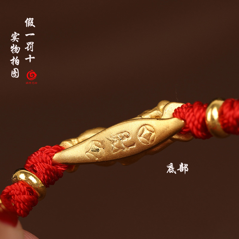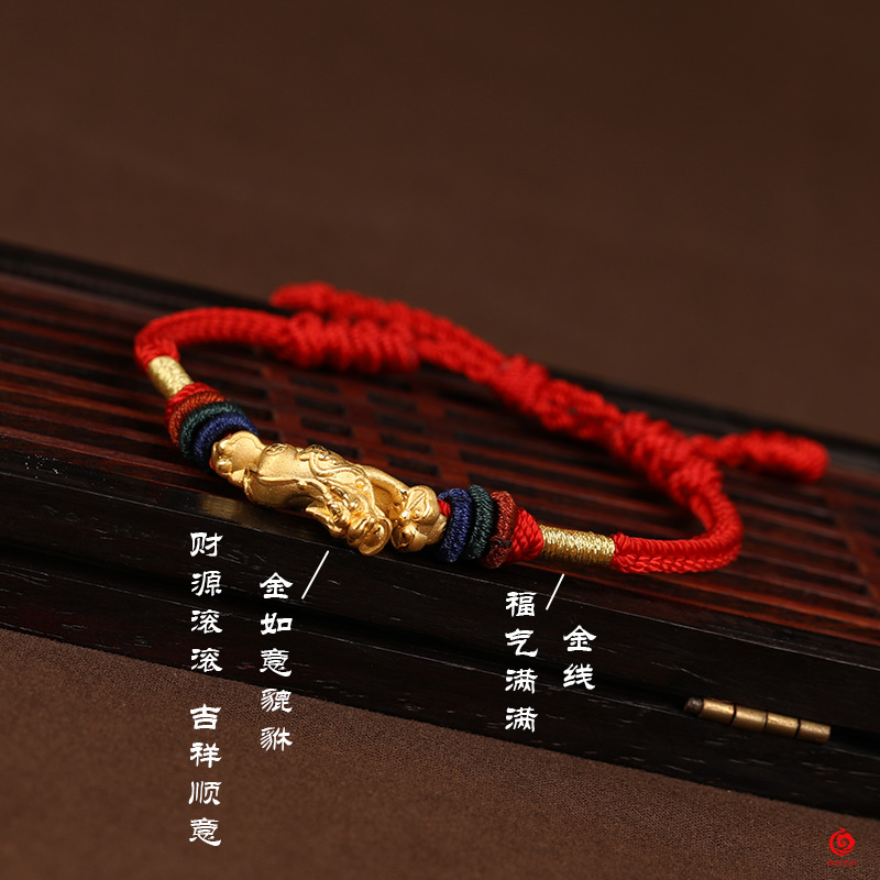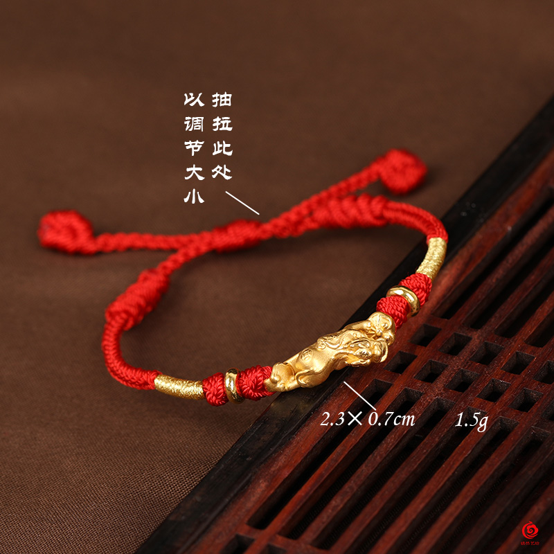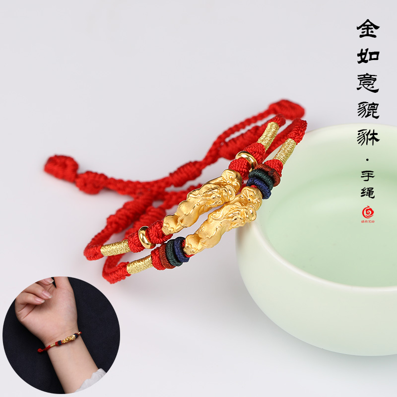 黃金如意貔貅紅繩手鏈男女本命年3D硬金999足金紅手繩化太歲招財1入