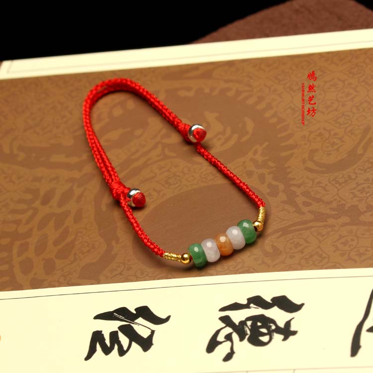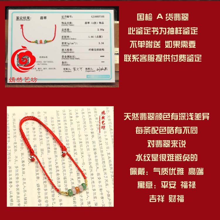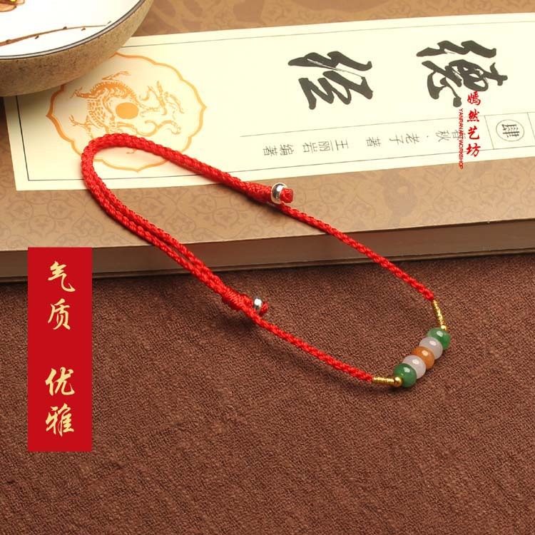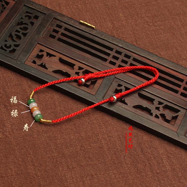 高端A貨翡翠紅繩腳鏈999足金轉運珠紅腳繩/手鏈男女本命年禮品1入