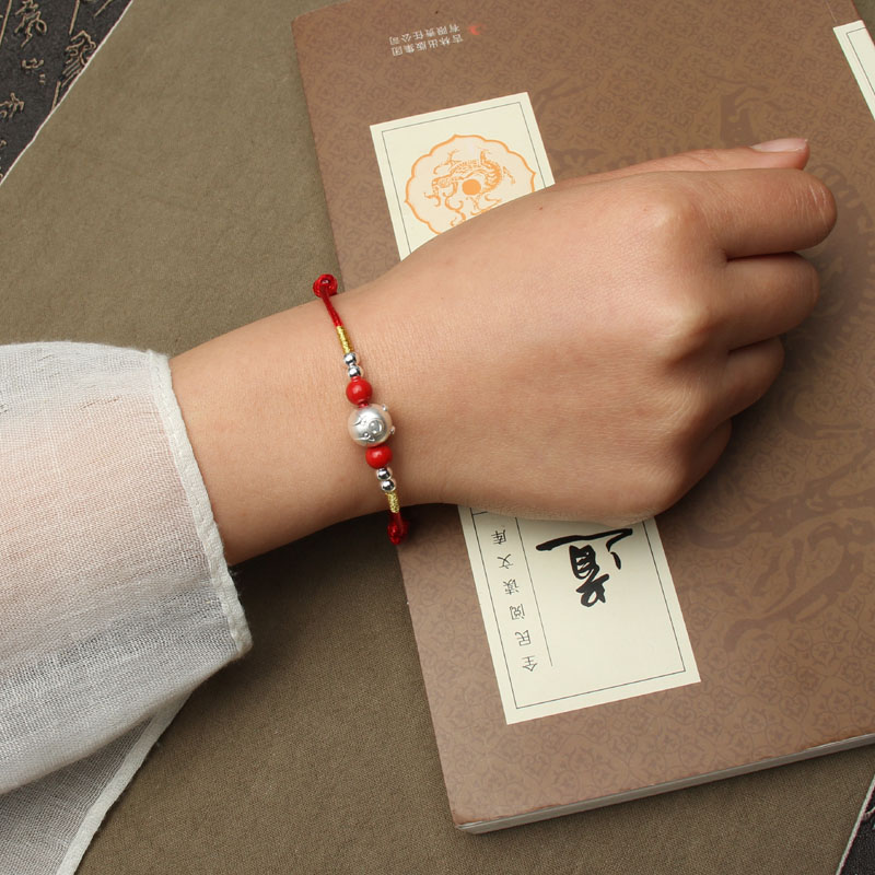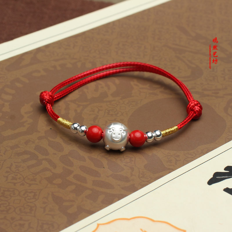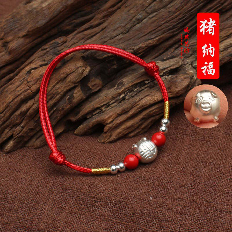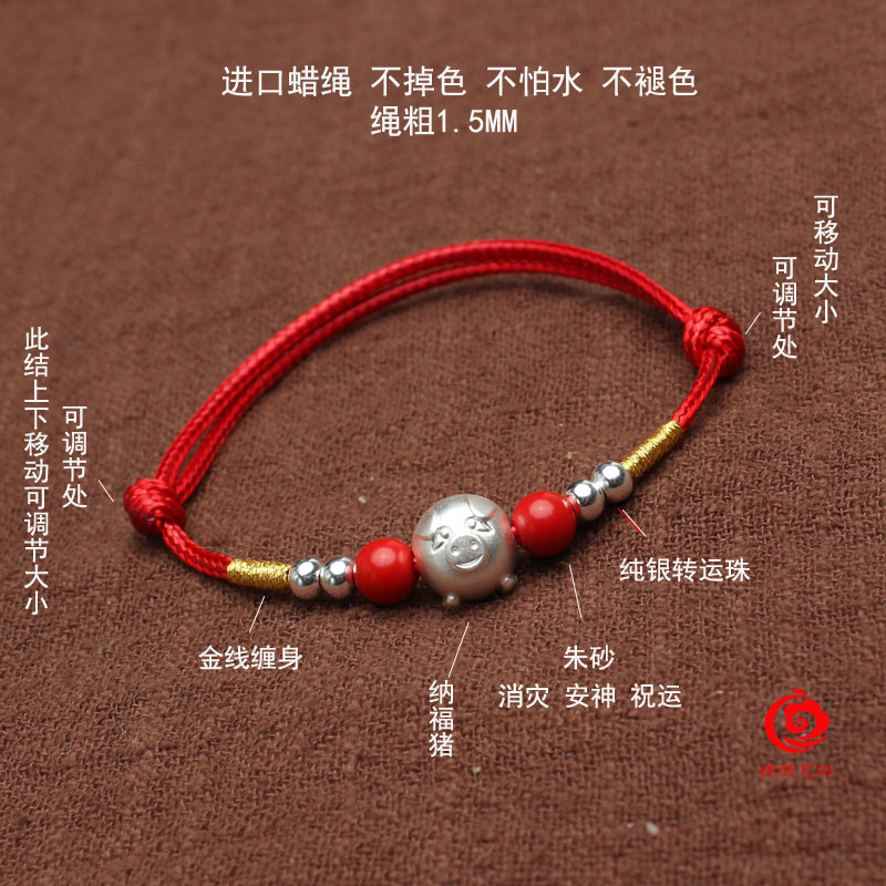 990足銀 小福豬 進品蠟繩編織