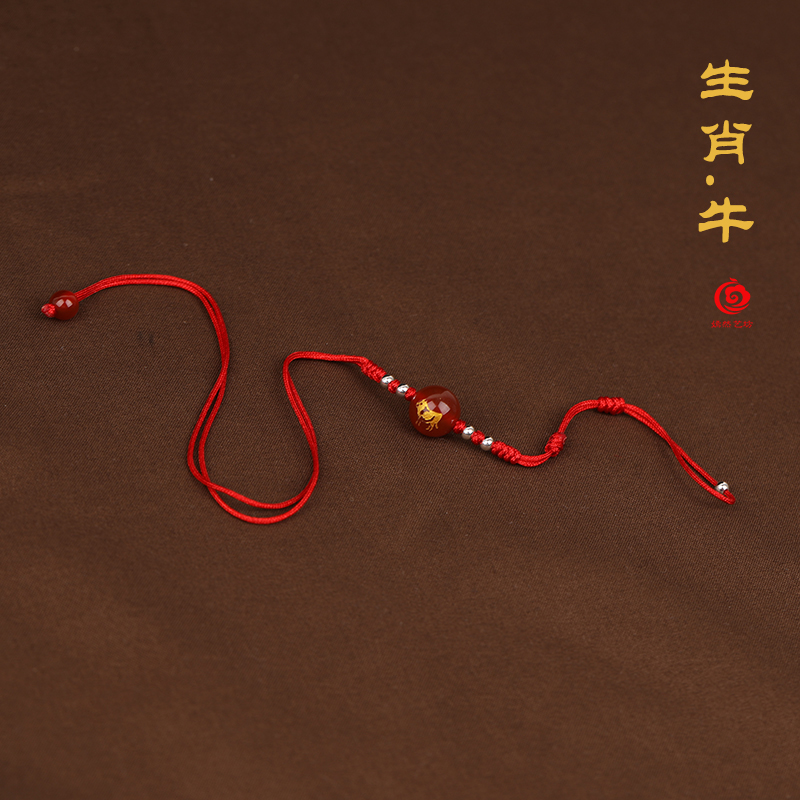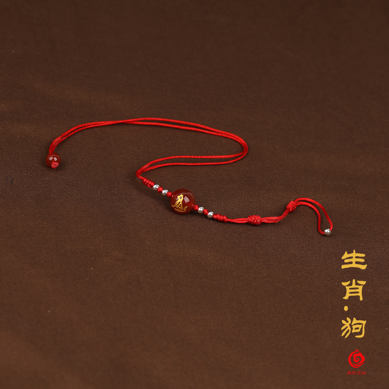 開光純銀轉運珠瑪瑙十二生肖豬鼠牛腳鏈男女本命年情侶腳繩吉祥物1入