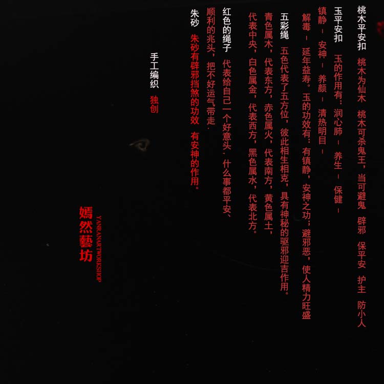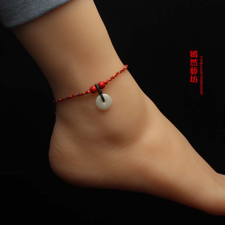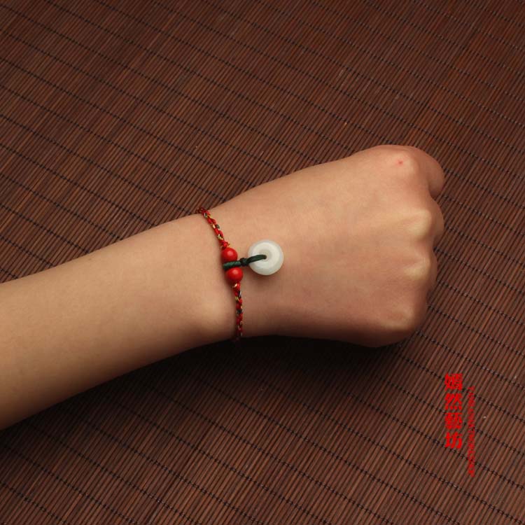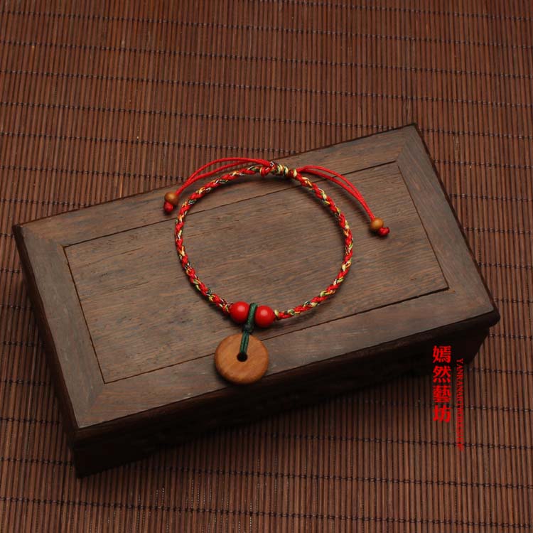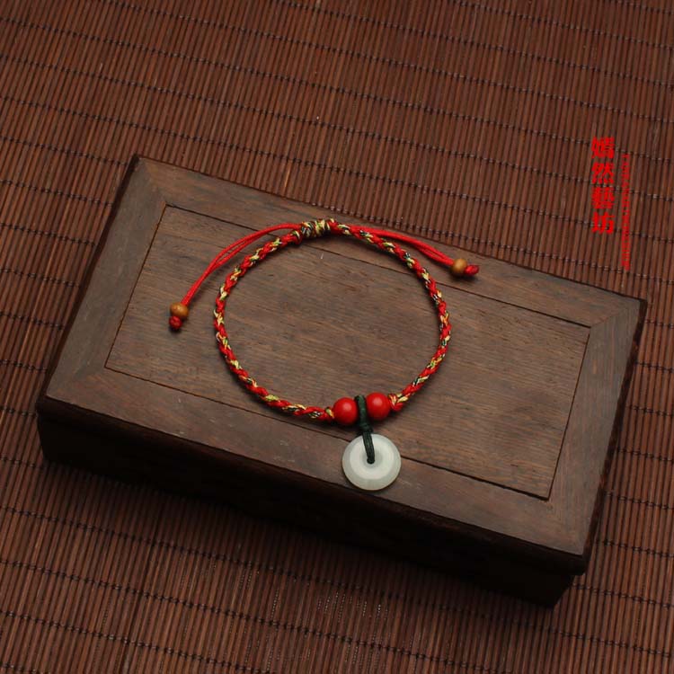 開光翡翠玉桃木平安扣紅繩手鏈情侶腳鏈五彩繩手繩男女端午節1入