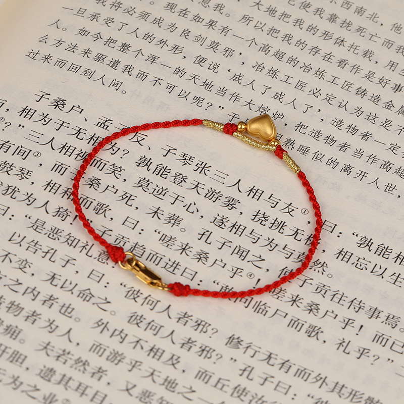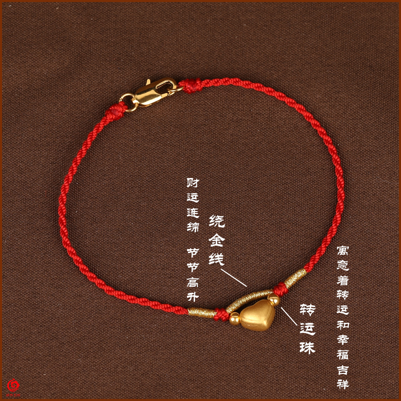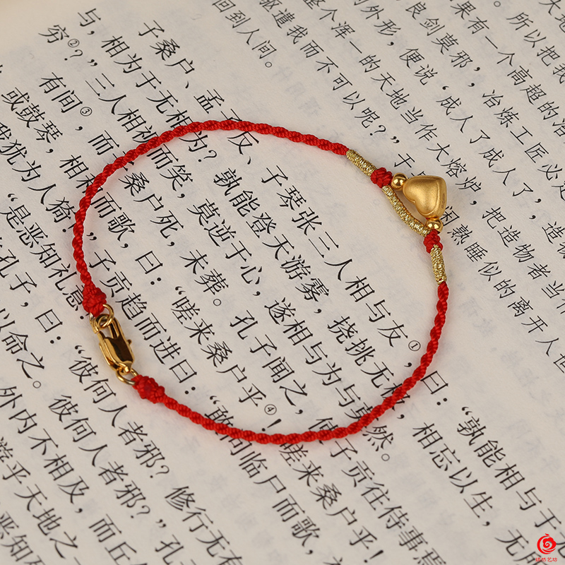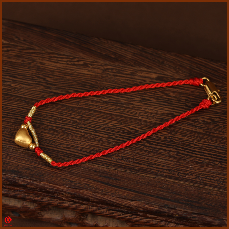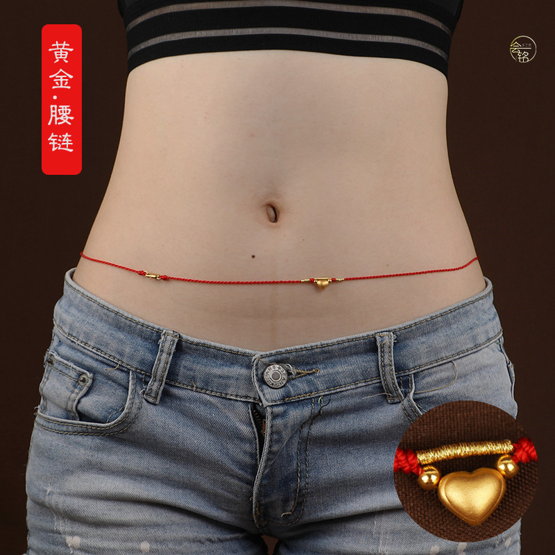 黃金愛心紅繩腰鏈超細女款足金轉運珠紅腰繩本命年吉祥旺姻緣腰帶1入