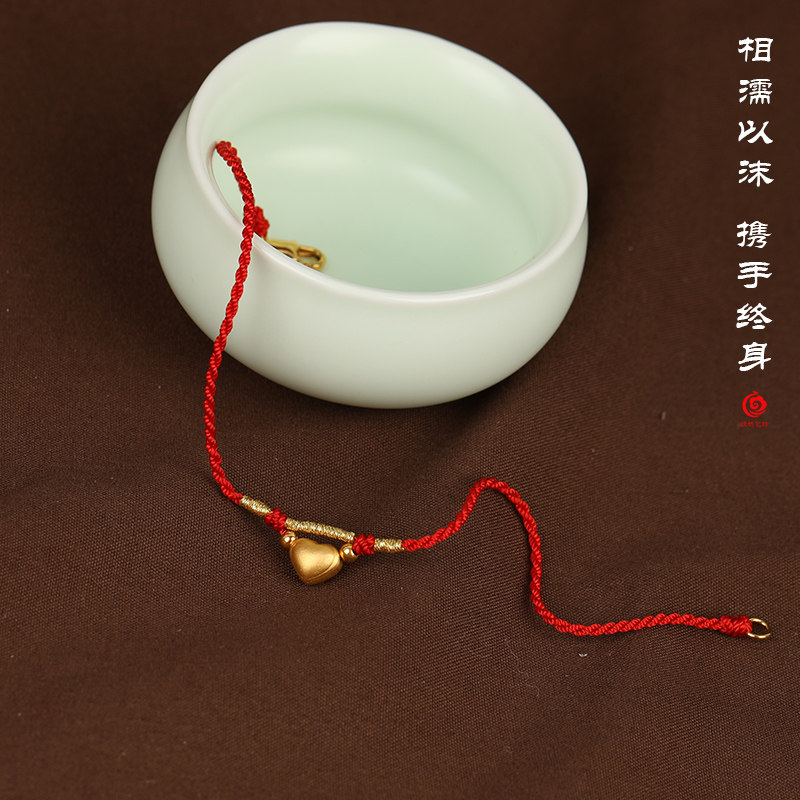 999足金3D硬金黃金愛心紅繩腳鏈轉運珠腳繩本命年女款超細旺姻緣1入