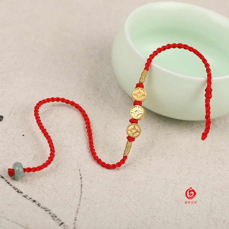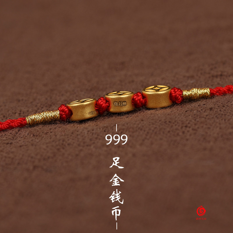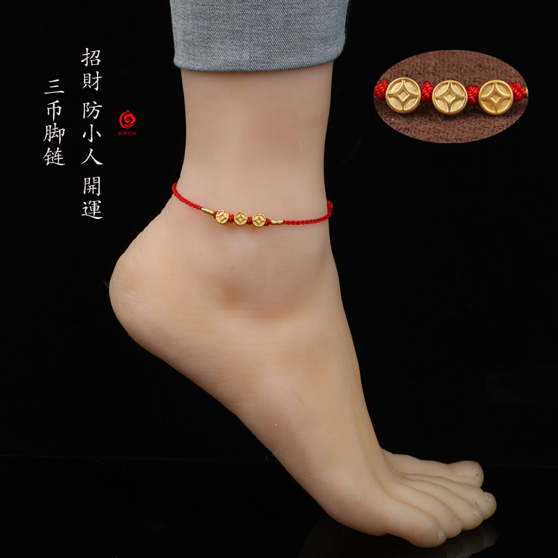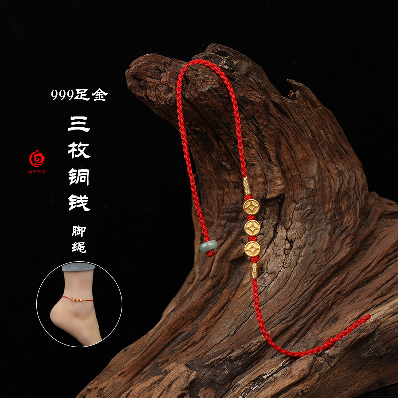 999足金紅繩腳鏈黃金腳繩女男款超細簡單時尚防小人辟邪旺財姻緣1入