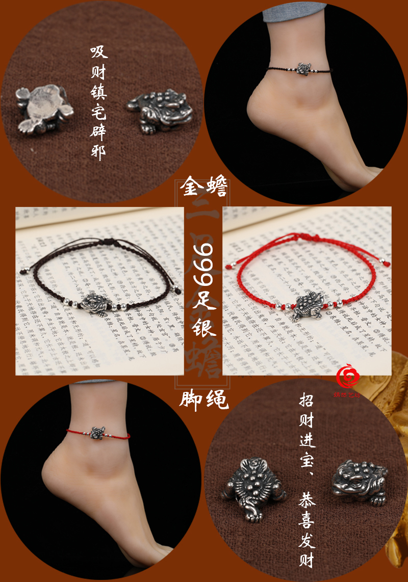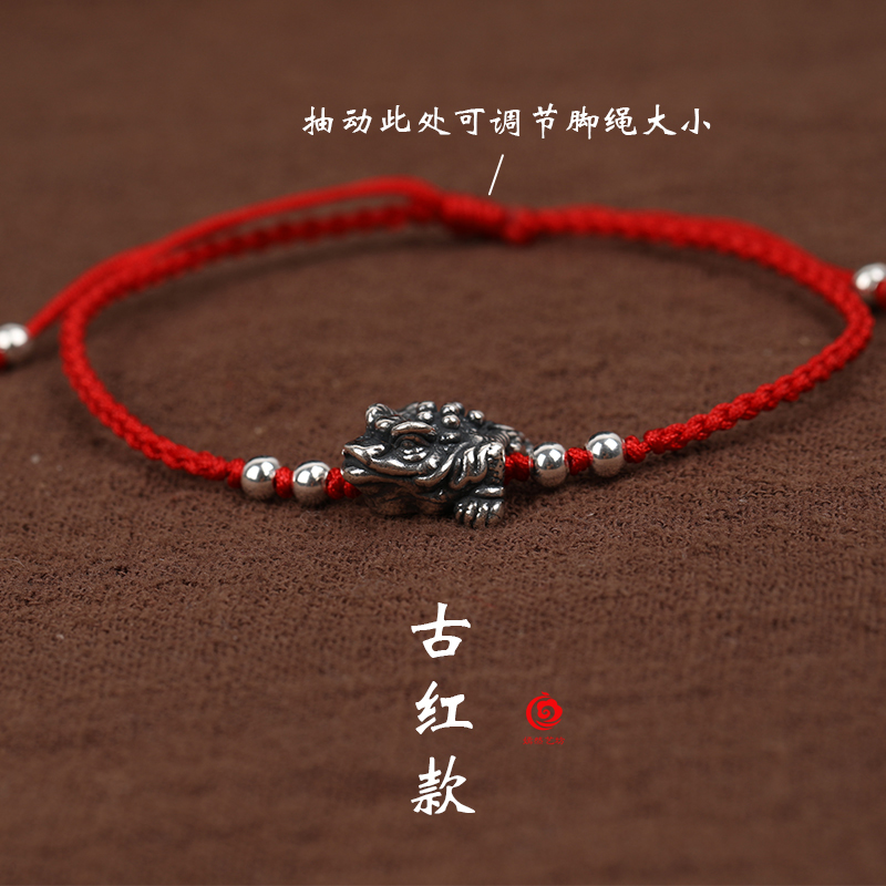 開光999純銀三足金蟬紅繩腳鏈情侶腳繩男女本命年招財辟邪禮品1入