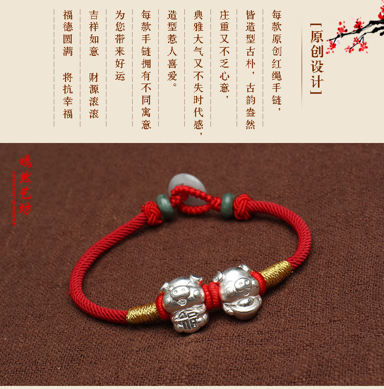 開光2019年純銀豬紅繩手鏈男女情侶款本命年旺財福豬辟邪手繩姻緣1入