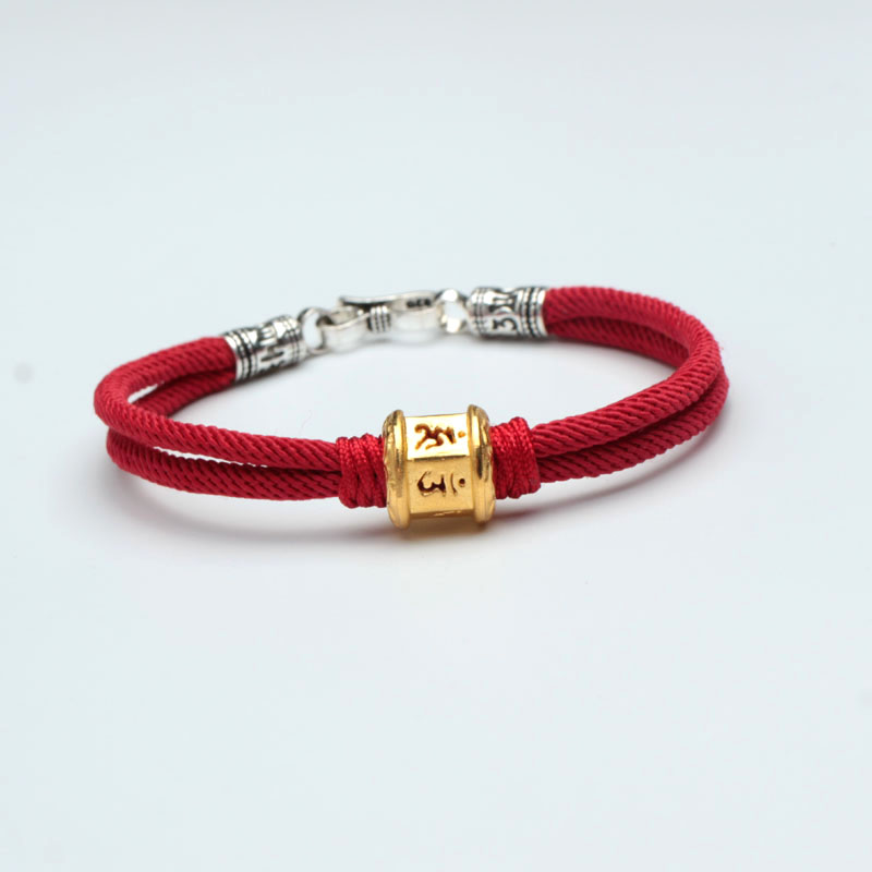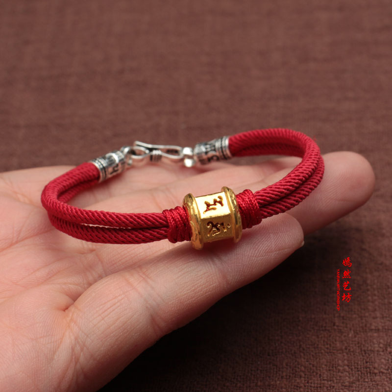 黃金六字真言辟邪保平安紅繩手鏈男女情侶款紅手繩本命年足金飾品1入