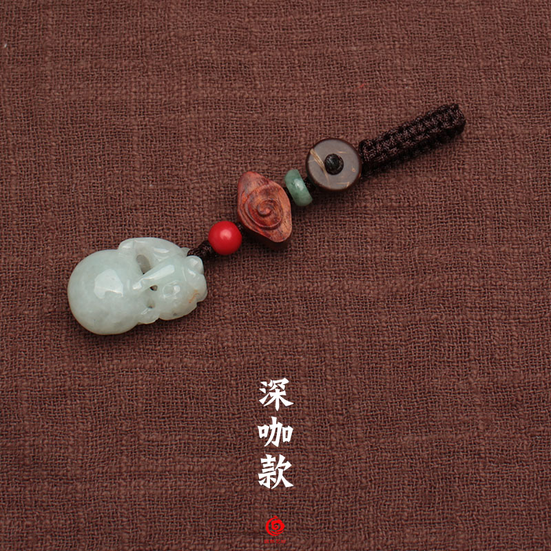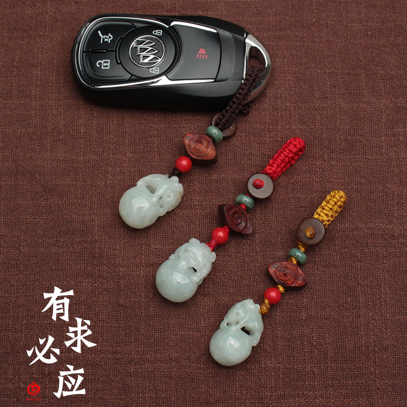 翡翠有求必應紅繩汽車鑰匙扣掛件男女士鑰匙扣吊墜本命年旺姻緣1入