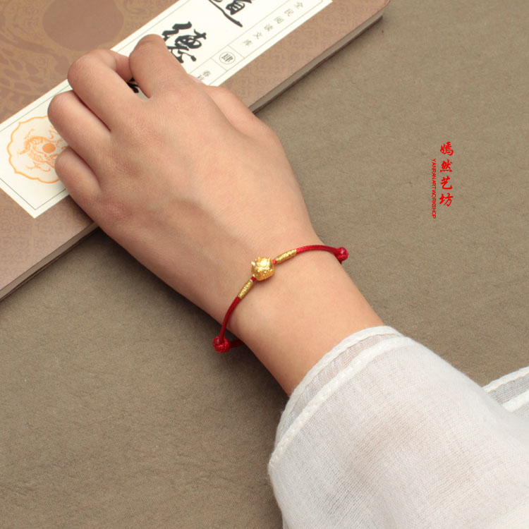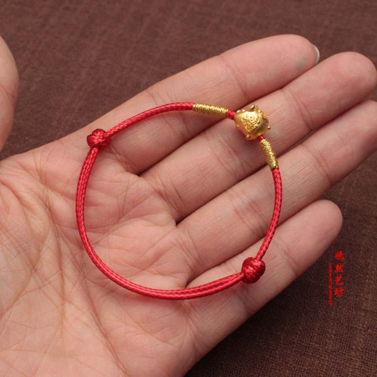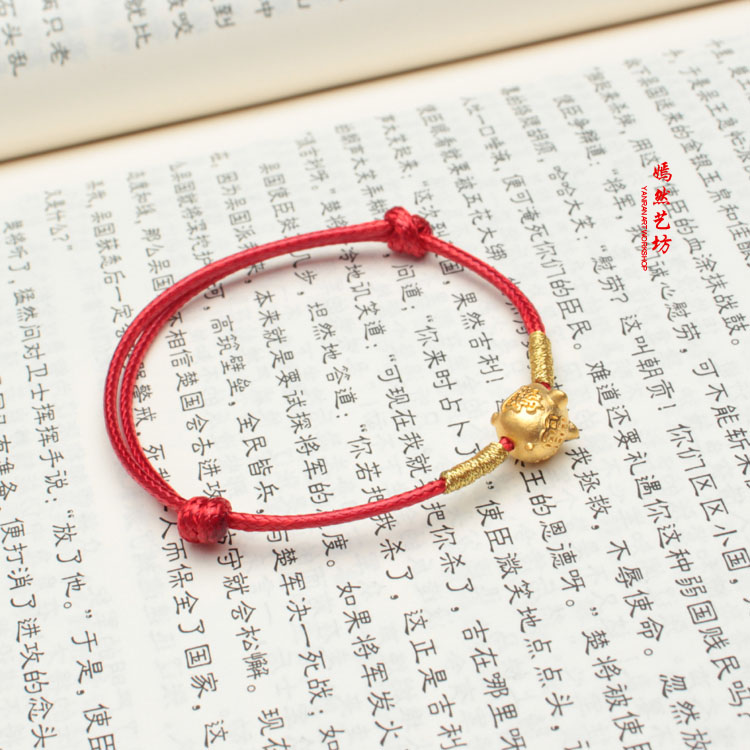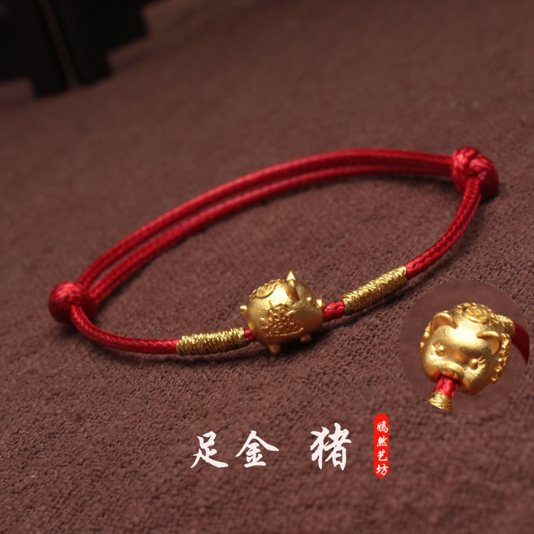 2019本命年化太歲辟邪黃金生肖豬紅繩手鏈轉運珠手工情侶手繩男女1入