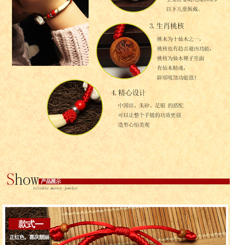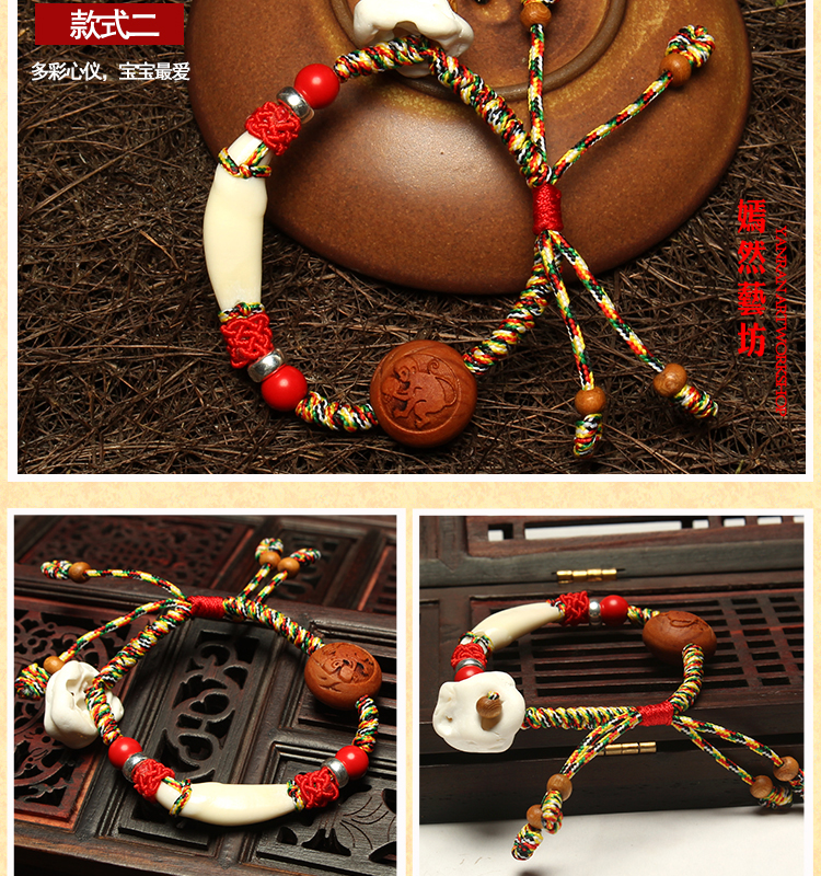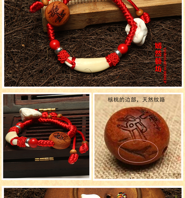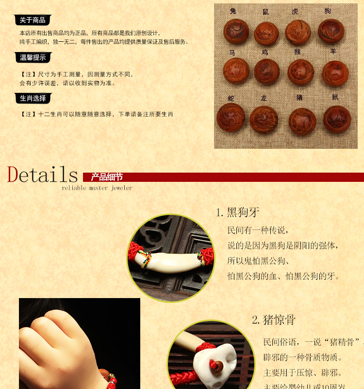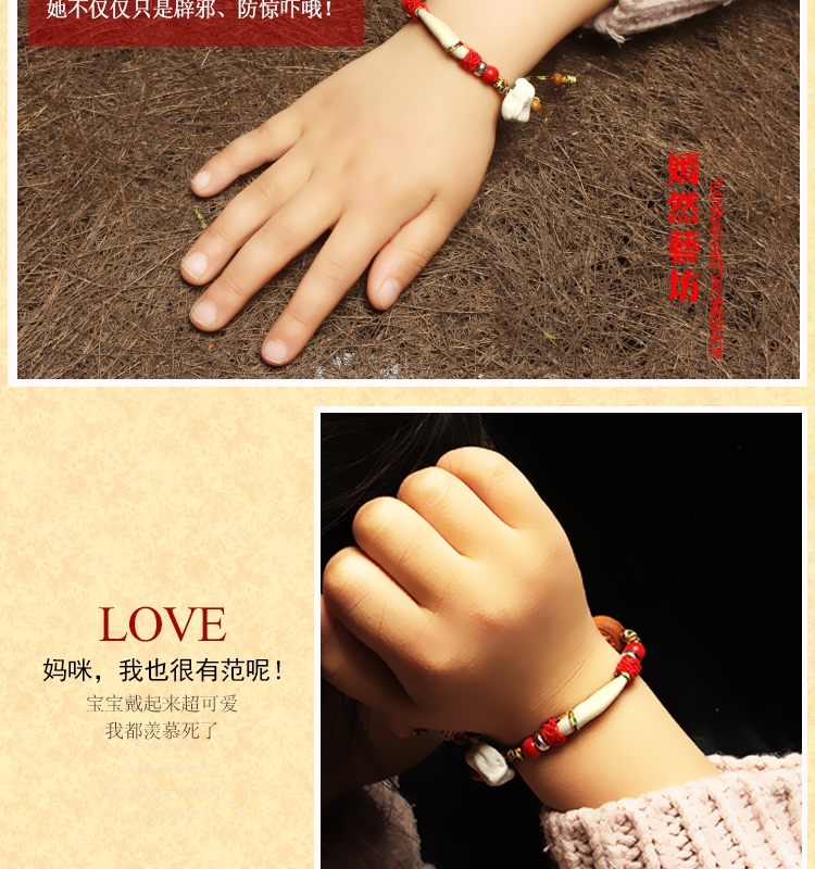 辟邪紅繩手鏈 寶寶嬰兒手鏈辟邪壓驚黑狗牙豬驚骨桃核手鏈朱砂銀1入
