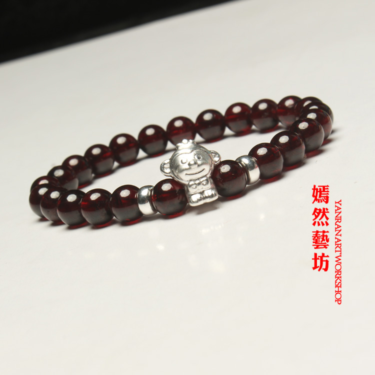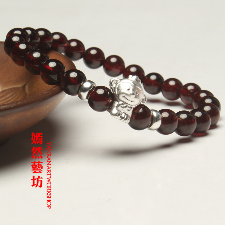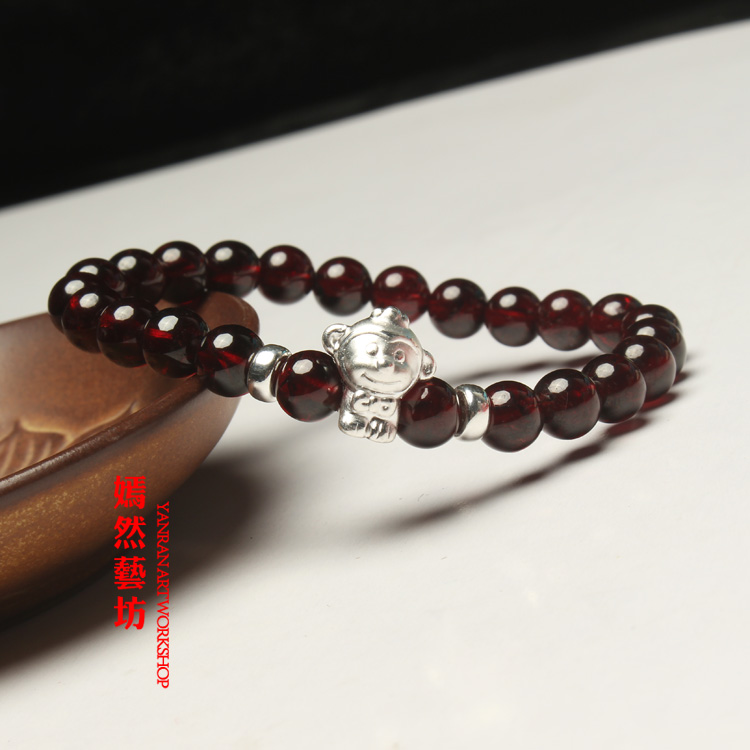 開光天然石榴石手鏈+S9993D硬銀猴年女生石榴石紅繩手鏈養顏單圈1入