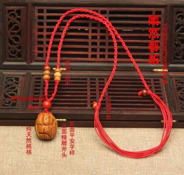 可調節大小 嬰兒 寶寶 成人 都可以配帶 小巧 方便 項鏈繩最 短尺寸為42厘米 最長約70厘米 全為正品無毒無害 放心配帶 桃核的高約2.2*寬約1.8厘米