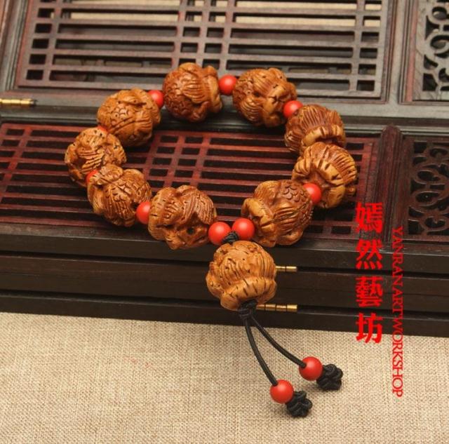 正品桃核雕刻 做工精細 設計獨特 簡單大方 彈力繩穿串 桃木珠和朱砂珠可選 男女都可以佩戴 質量保證 誠信賣家7天無理由退貨