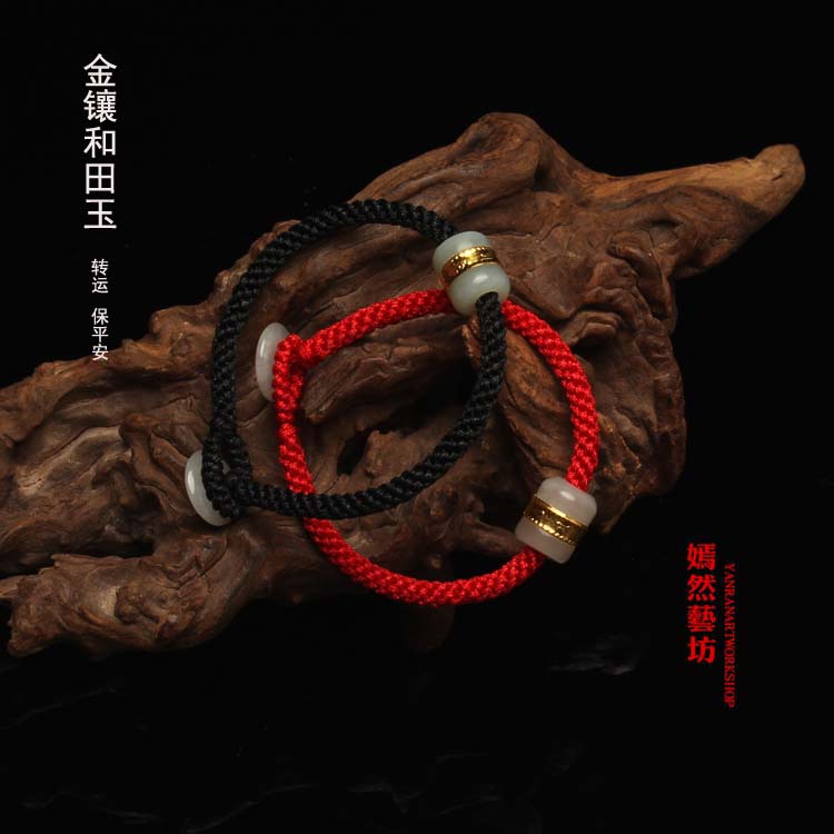 千足金鑲在和田玉表面很薄一層不變形不掉色 保證真品