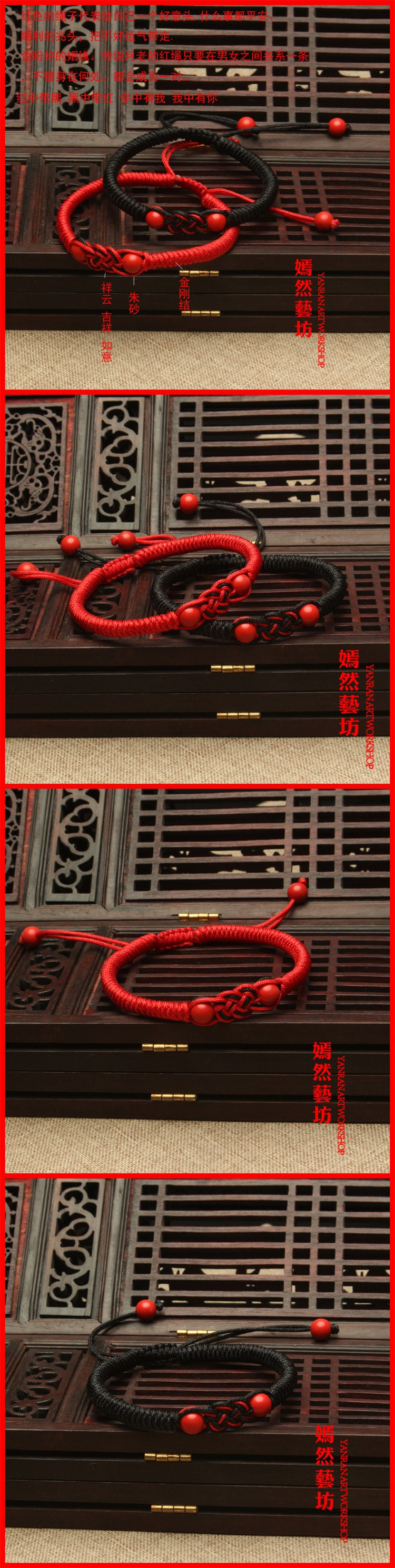 辟邪旺運 金剛結紅繩手鏈 祥云情侶手鏈 男女朱砂手串紅手鏈 黑色1入