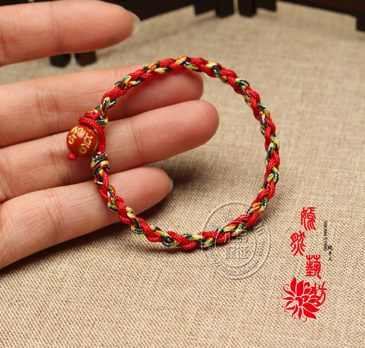 正宗朱砂七字真言 純手工編制五彩繩 辟邪 轉運保平安 男女通用