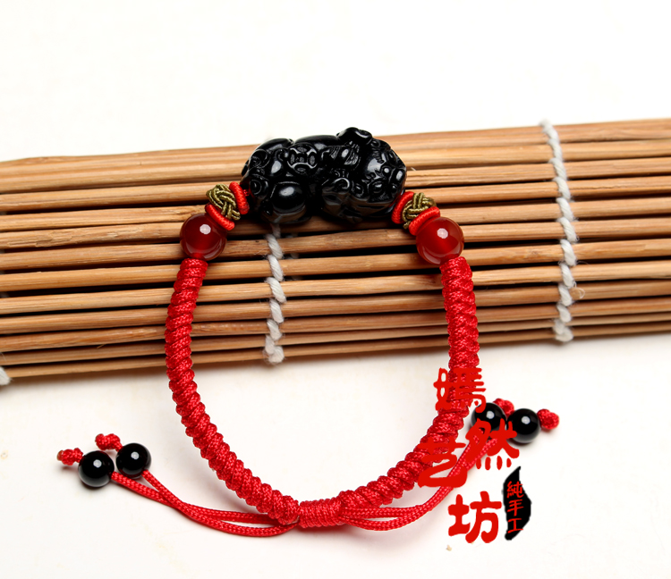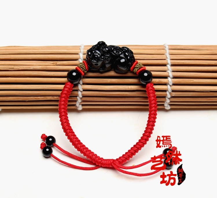 開光本命年紅繩情侶手鏈黑曜石貔貅手繩招財辟邪防小人 男女1入