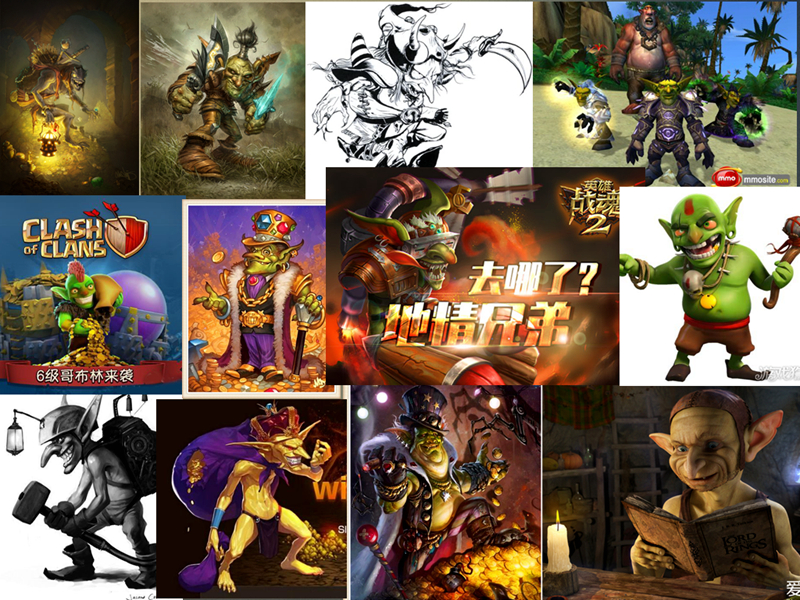 哥布林 Goblin是一種傳說中的類人邪惡生物,由精靈異變而成,所以哥布林一般都有長長的尖耳。 由于“哥布林”是一種在西方神話故事里的生物,在東方語言并沒有等同的概念,所以不同的作品對這種生物都有不同的譯名,當中有譯作鬼怪、惡鬼、小妖怪、妖精、地精(其實地精和哥布林是有區別的)等不同名稱,亦有音譯作哥布林或高扁. 哥布林有著暗綠色皮膚,是矮小且難看的紅眼睛小矮人,個性貪婪又卑劣,性格傾向邪惡、狡猾而善于詐欺。它們主要生活在黑暗深處的地下世界,有著獨特的行動秩序與體系。雖然文化發展程度稱不上高,但在采礦與建造地下建筑物上有著獨到的見解,戰斗能力弱小但會以大批群體行動補其不足。 地精(Gnome,或音譯為諾姆)是一種在歐洲的傳說中出現的妖怪,身材矮小,頭戴紅色帽子,身穿伐木衣,經常在地下活動,成群結隊出沒。由于他的特性與其他傳說生物很近似,他亦經常被錯誤當作是精靈、哥布林或矮人。Gnome語源為Ge(大地)+Nomos(家)或Gnosis(智者)。歐美的家家戶戶皆有地精造型的裝飾品。地精也被視為代表土的元素四精靈之一。 而哥布林通常指有惡意的叢林妖精,有著嗜血和貪財的習性。在諸多游戲作品中,邪惡的哥布林會與獸人和惡魔為伍攻擊人類,而融入人類社會的哥布林也都是貪財的小人。