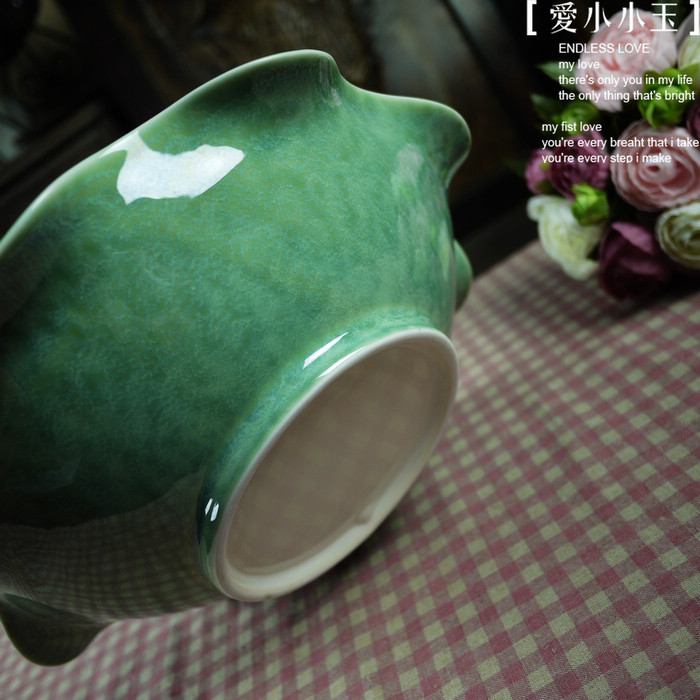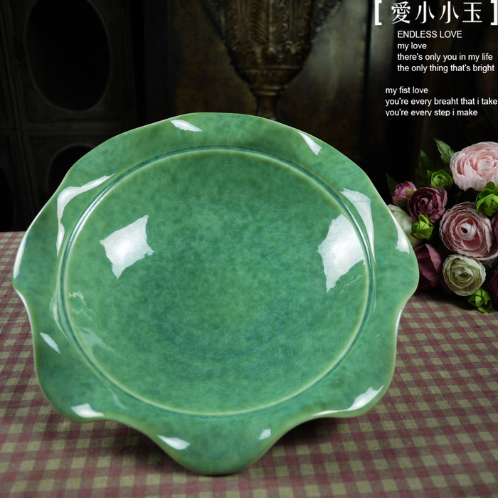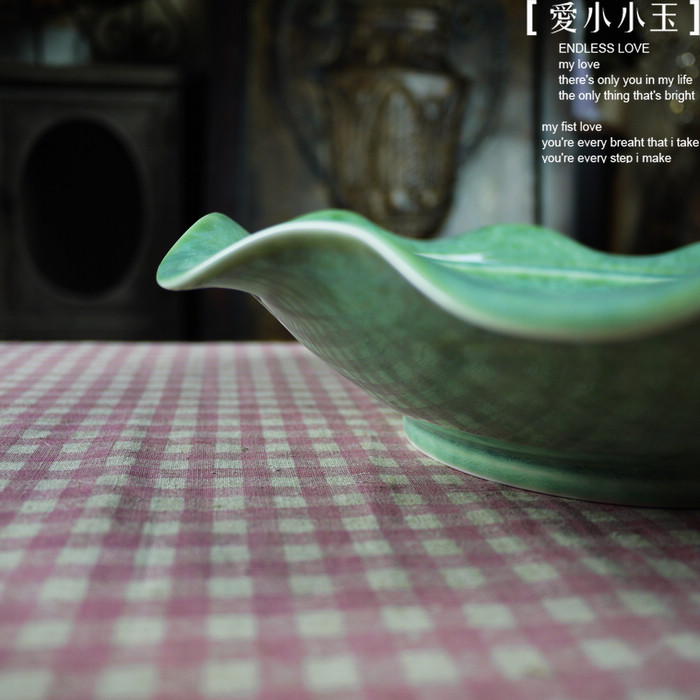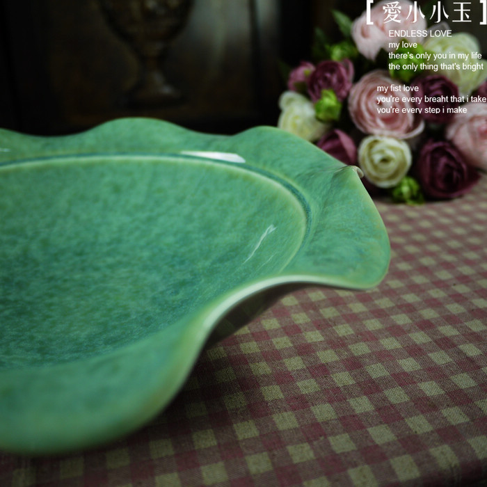 【碧水藍天:荷葉盤】陶瓷干果盤工藝品擺件時尚趣味創意家居飾品1入