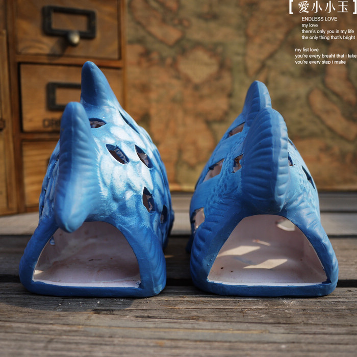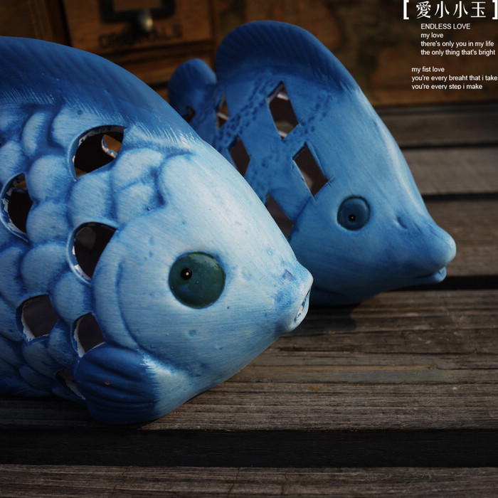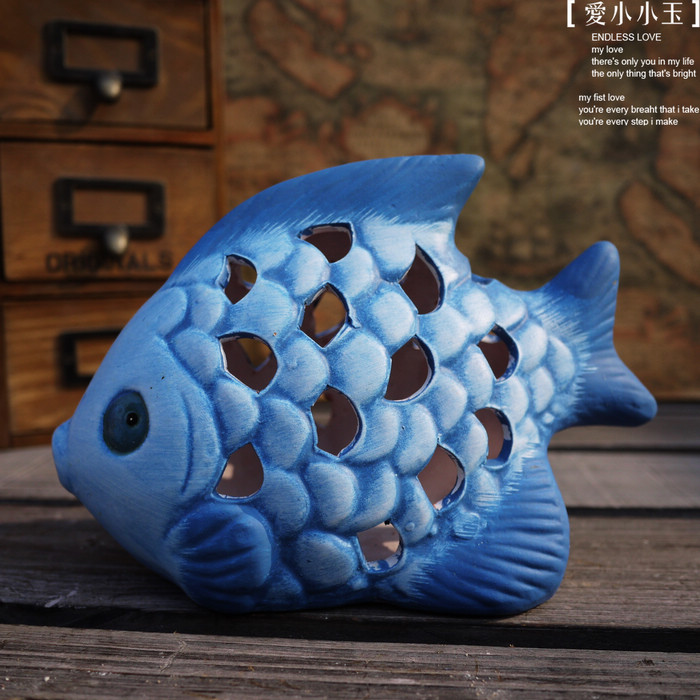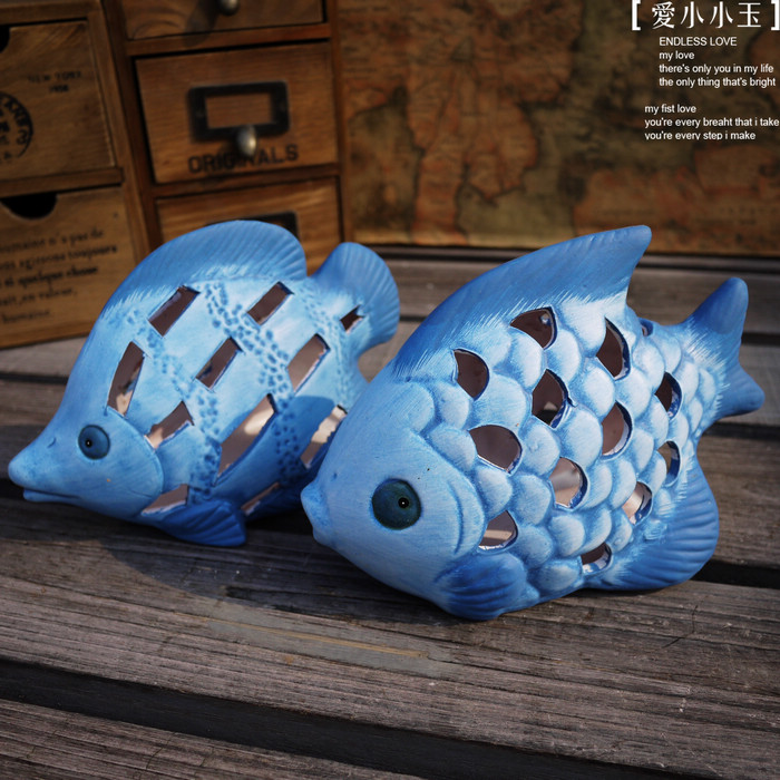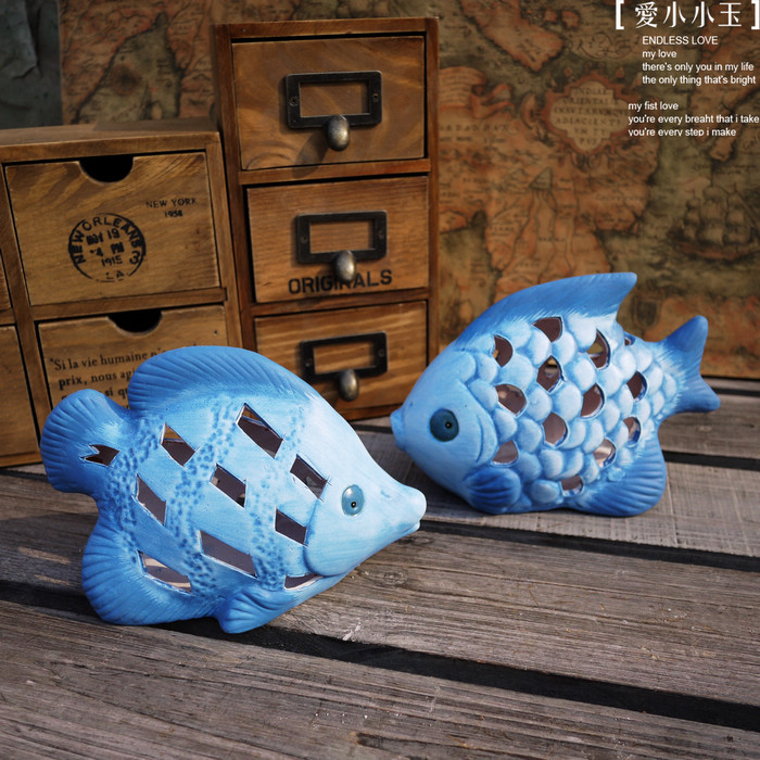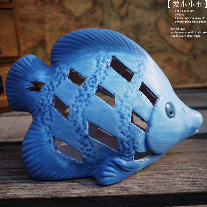 【海之藍:鏤空魚燭臺】美式鄉村 趣味陶瓷擺件 結婚禮物家居飾品1入