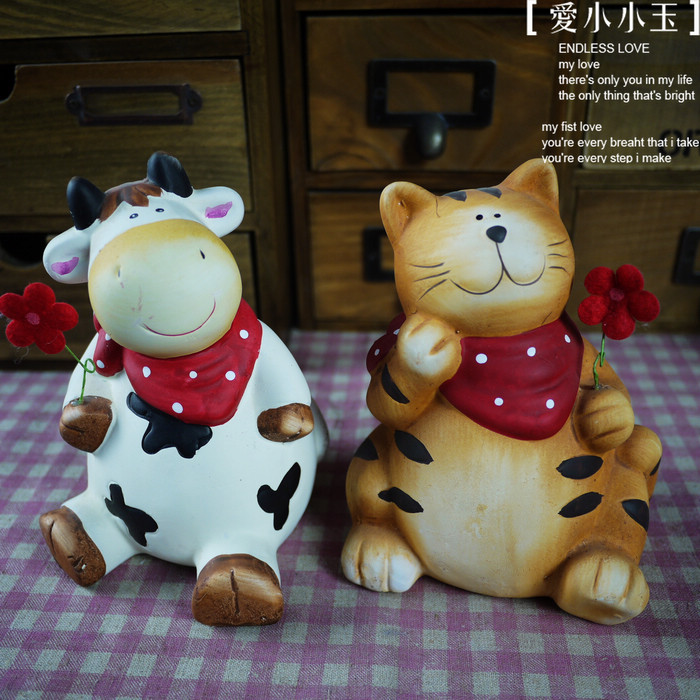 【阿歷克斯:可愛的伙伴】陶瓷趣味擺件結婚禮物時尚可愛家居飾品1入