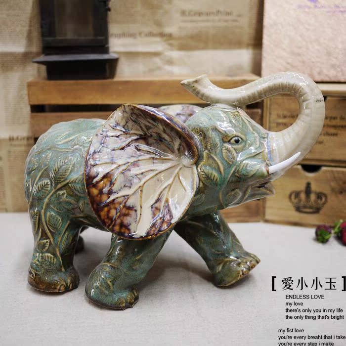 「印巴文化]葉之神-陶瓷大象 奢華系列 家居裝飾品 工藝品擺設1入