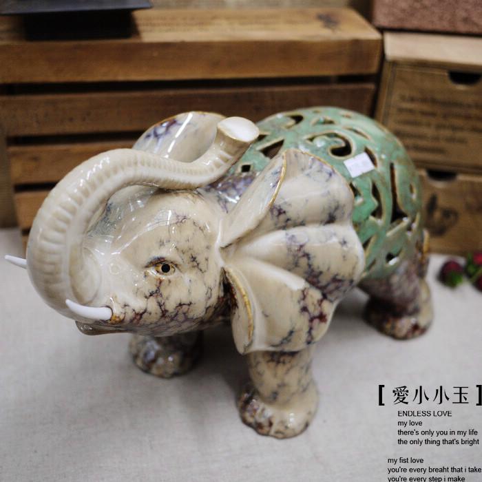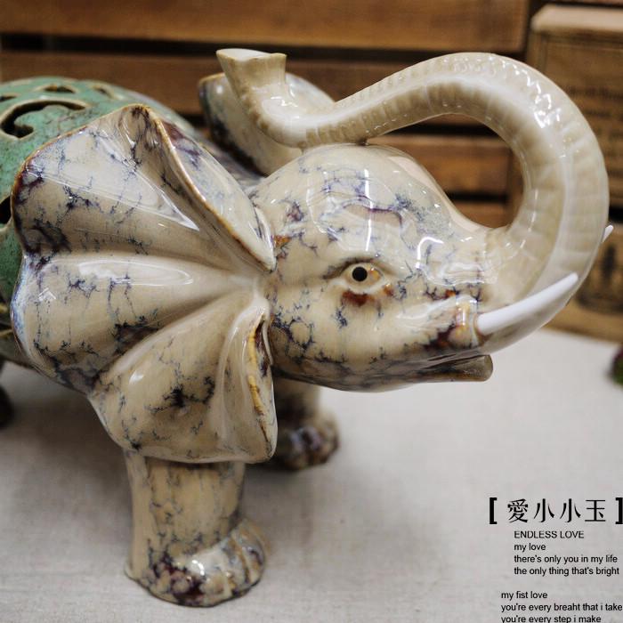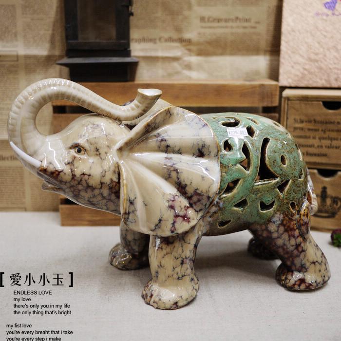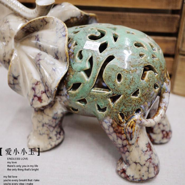 「印巴文化]翠釉鏤空陶瓷大象 奢華家居裝飾品 工藝品擺設禮物1入
