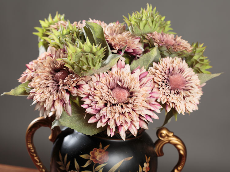 油畫情誼 精致的筆觸、以優雅的姿態勾勒出栩栩如生的花鳥靜態、情意綿綿。 花瓶+8支白色+8支粉色小牡丹