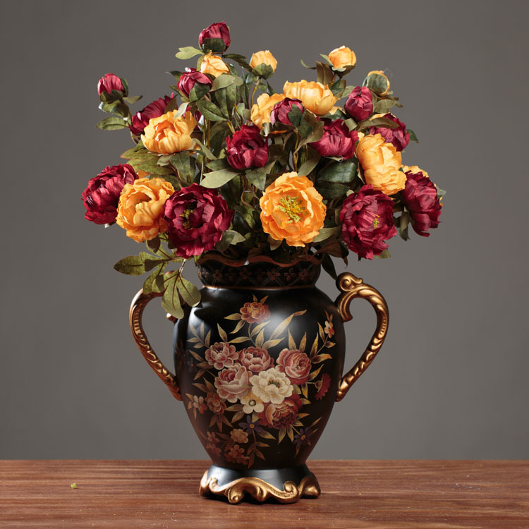 【材質】中溫陶瓷+手繪【工藝】復古、打磨、手工彩繪 【尺寸】花瓶含把手長30.5CM,寬20CM,高29CM,口徑15.3CM 買家必讀:我們的產品全都是手工的,包括模型的制作,圖案的貼制,以及整個油漆上色過程。因為人不像機器可控,可以做出完全一致的產品,加上每個人的手法都有區別,所以每一批到貨在色彩和繪制上都會有些區別,也請買家們理解。人工的東西沒有無瑕疵的!每一批貨都會有些許小區別,包括圖案,顏色,色差等問題不做質量問題處理!如果因色差等問題需要退換貨的,來回運費買家承擔,介意者慎重選購哦! 注:此款為裝飾花瓶,請不要裝水,會滲水哦!