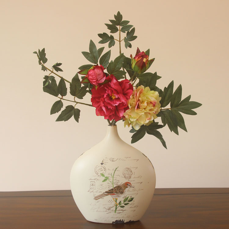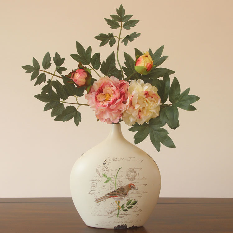 花瓶+1支白色+1支粉色手感牡丹